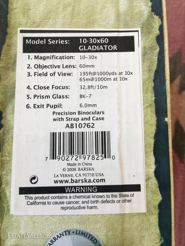 Barska 10-30x60 Gladiator Binoculars w/case. Lot#91