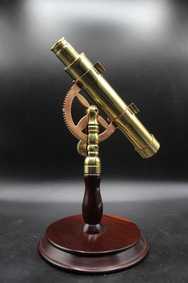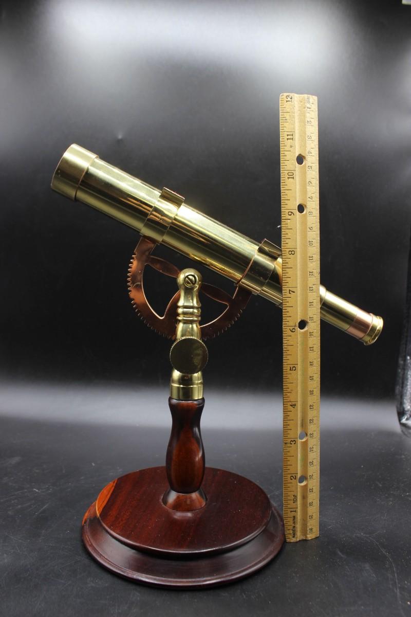 Barska Anchormaster 6X30 Spyscope with Desktop Pedestal, there are no significant cracks or chips to the wood, metal, or glass pieces on the spyscope and is in good condition. The scope does work and extends, check pictures for more details and for sizing.