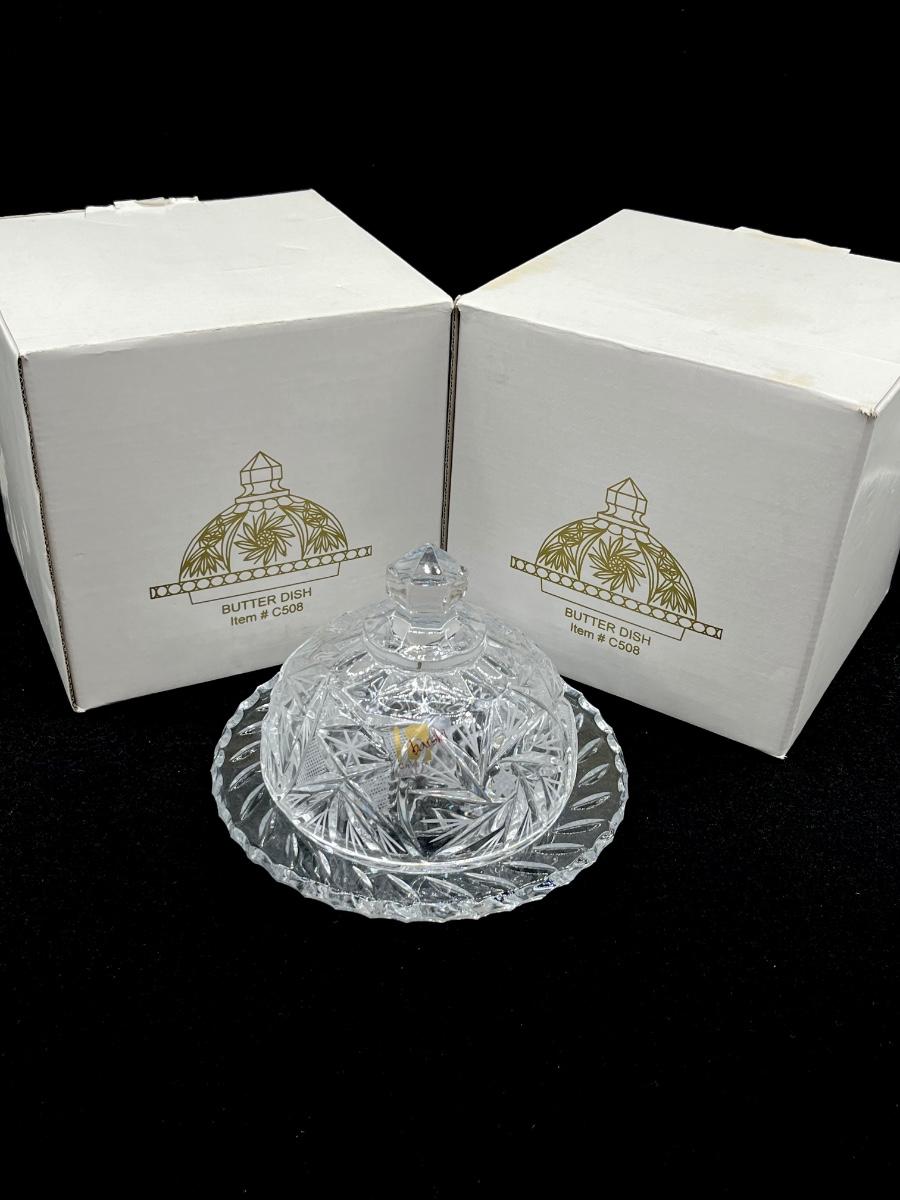 BARSKI CRYSTAL ~ PAIR (2) ~ Cut Crystal Round Butter Dishes