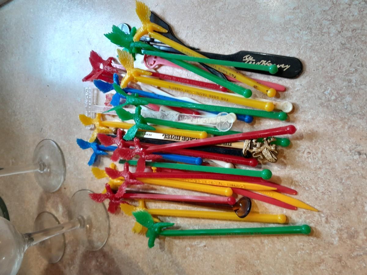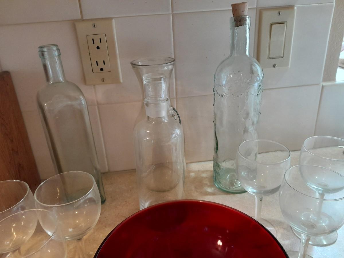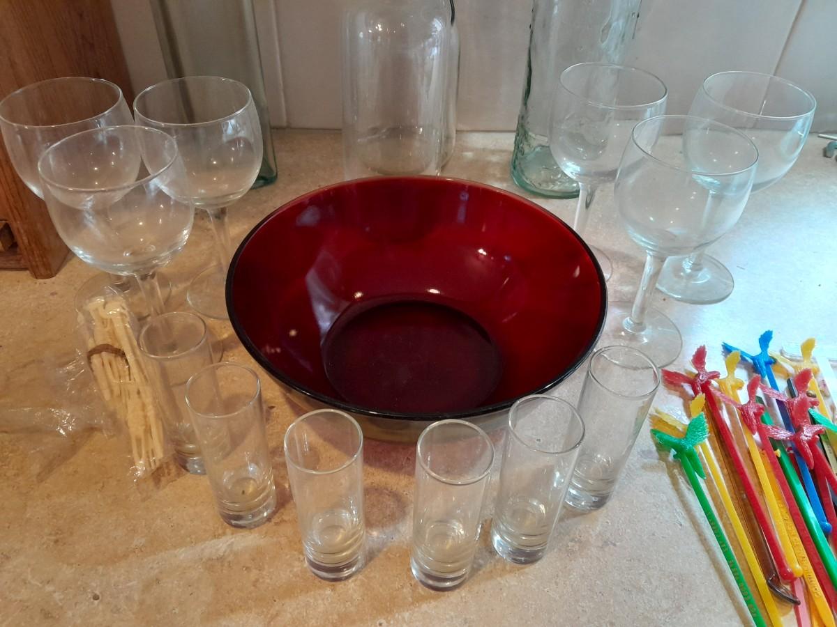 BARWARE GLASSES AND DECANTER SET, OTHER STEMWARE GLASSES, BOTTLES AND SWIZZLE STICKS