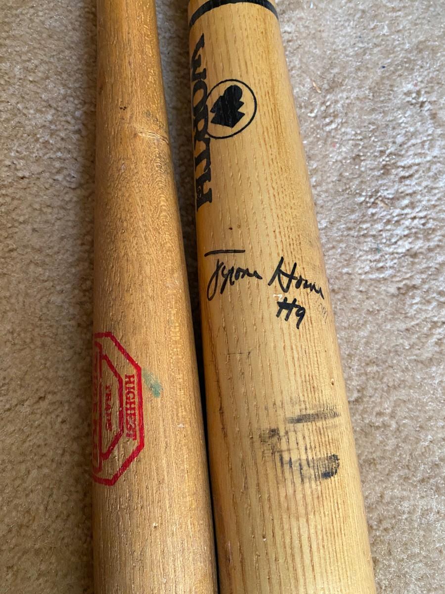 2 Wooden Baseball Bats, One Signed Tyrone Horne #9