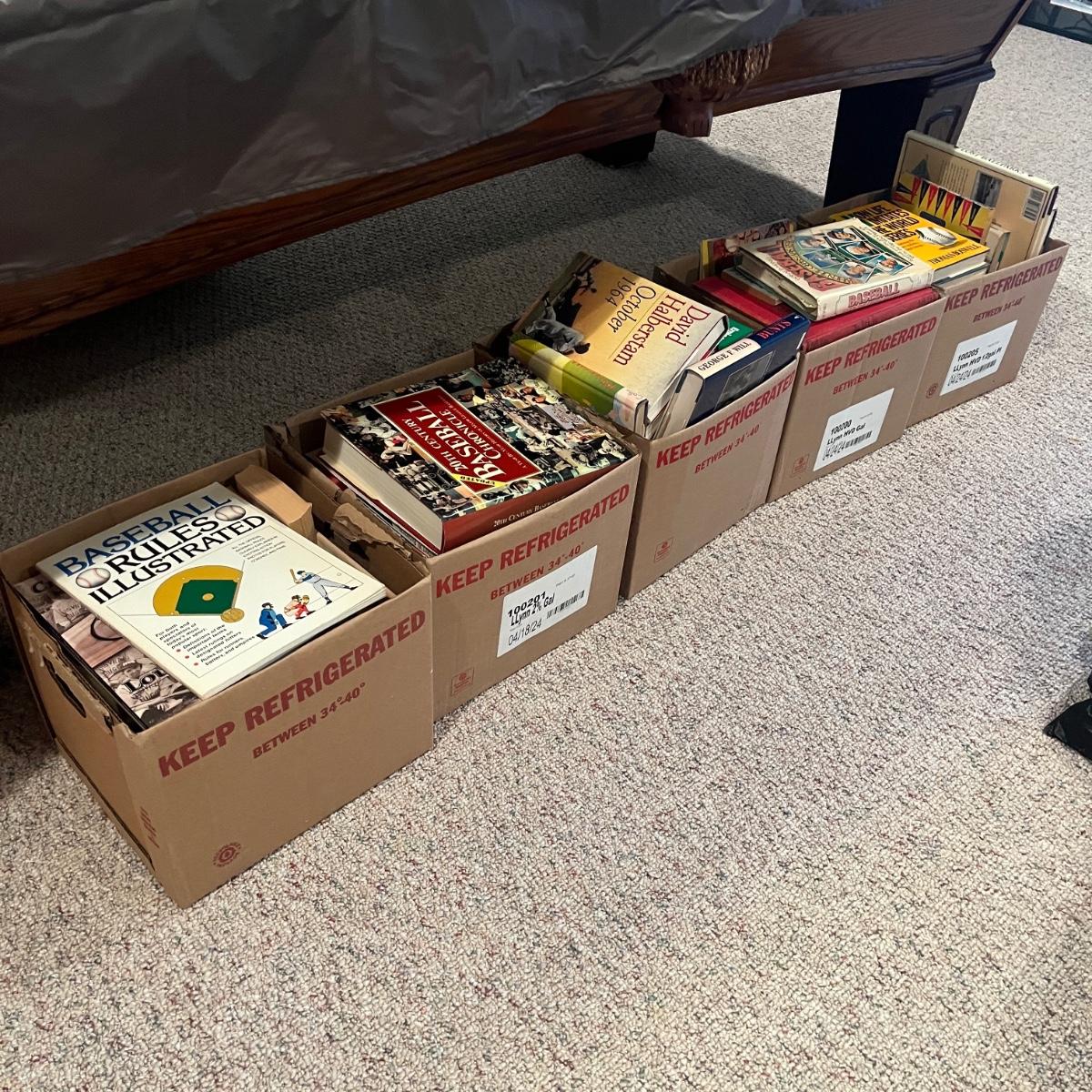This large collection of books on Baseball contains more than 60 hardcover books and over 20 paperback books including The Fireside Book of Baseball, Golden Game, Like it is, Baseballs Great Moments and many more. Books are down 1 flight of stairs.