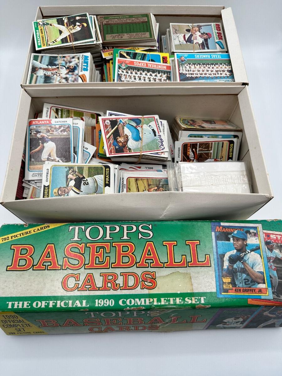 Baseball cards. Two shoe boxes and a Topps 1990 complete set