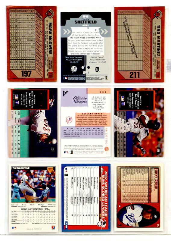 Alfonso Soriano GARY SHEFFIELD Mark McGwire Tino Martinez BASEBALL CARDS SET OF 9 - MINT