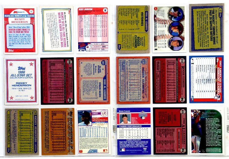 BASEBALL CARDS SET - Roger Clemens Rickey Henderson - 18 ALL STARS CARDS MINT