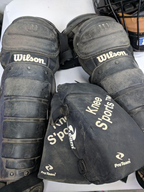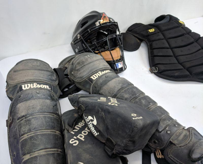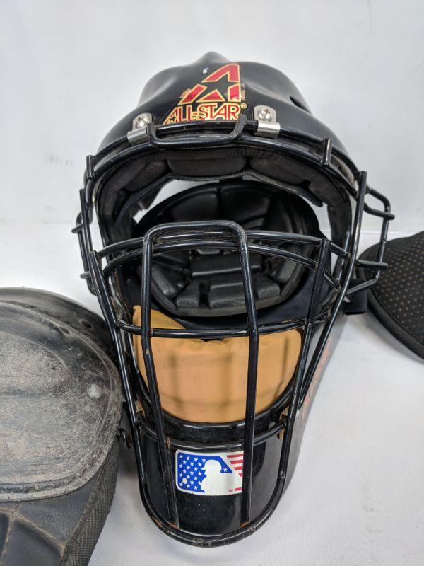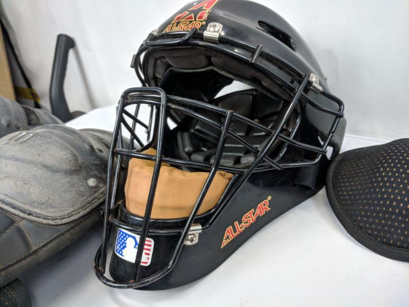Baseball Catcher Gear: Helmet, Knee Pads, Chest Piece, Nike Bat Bag