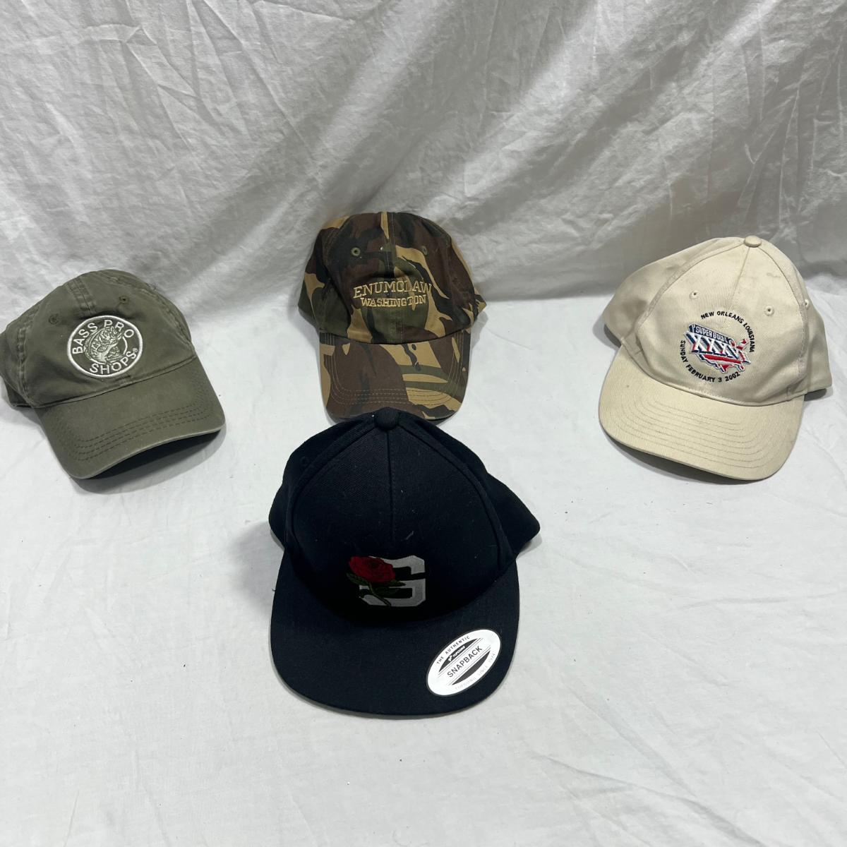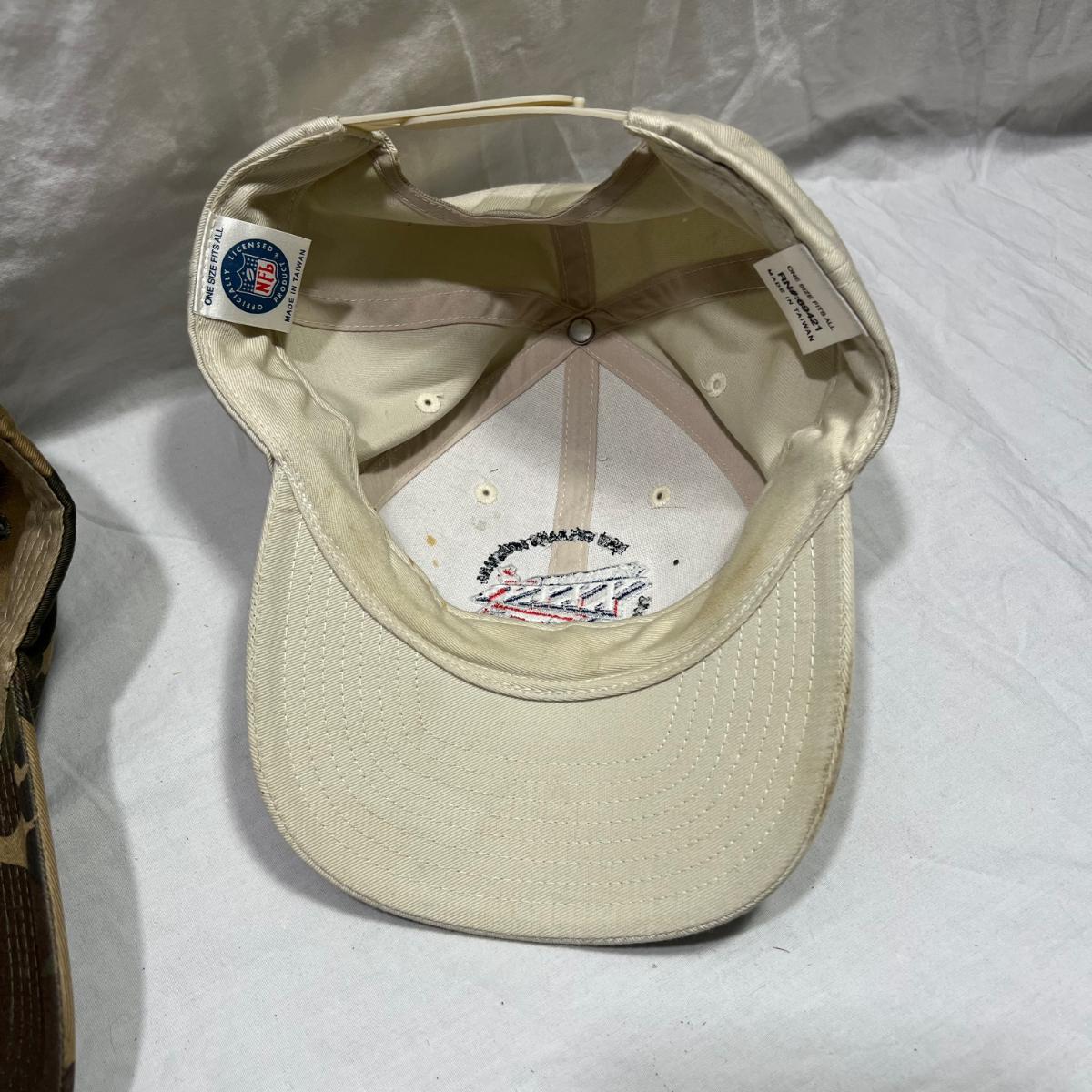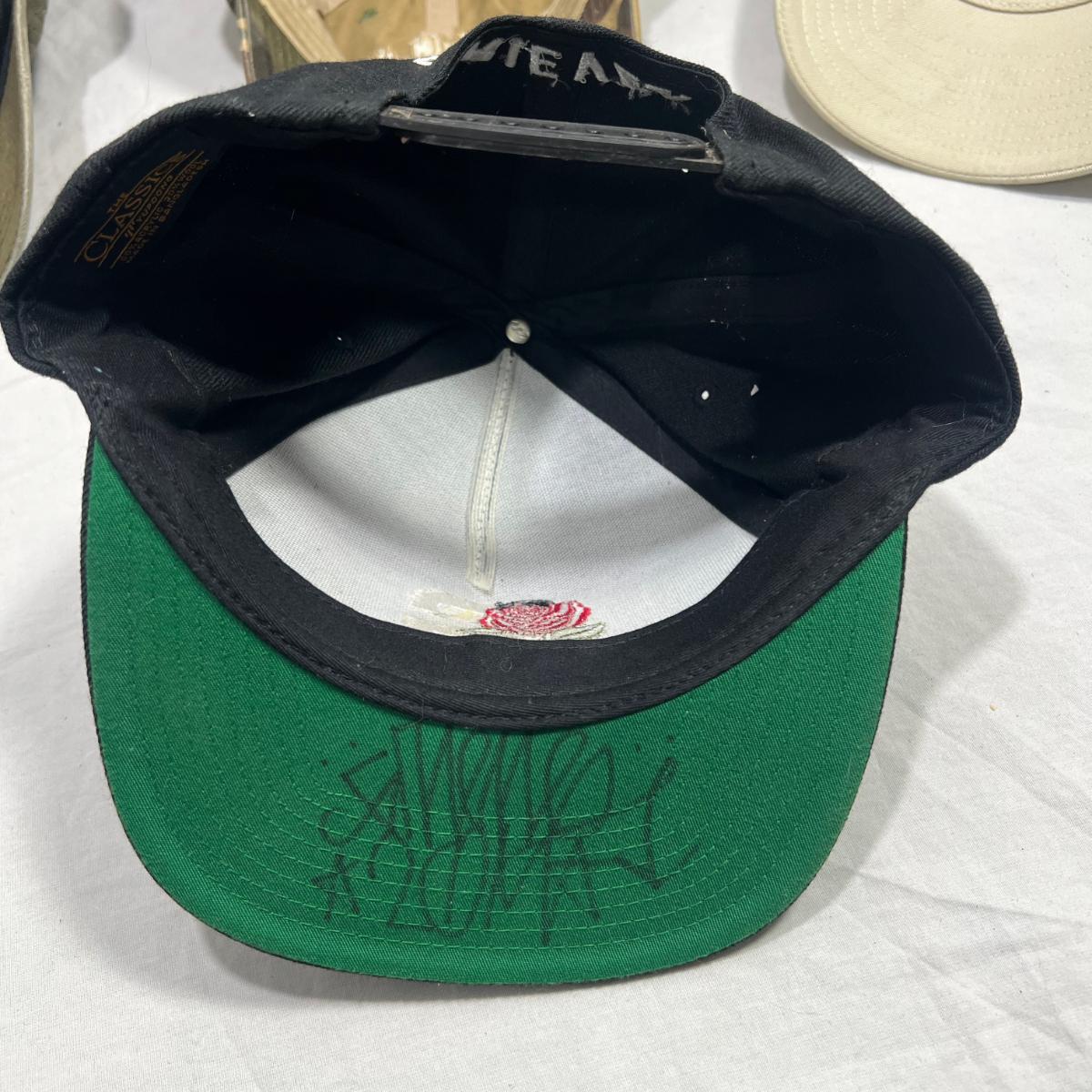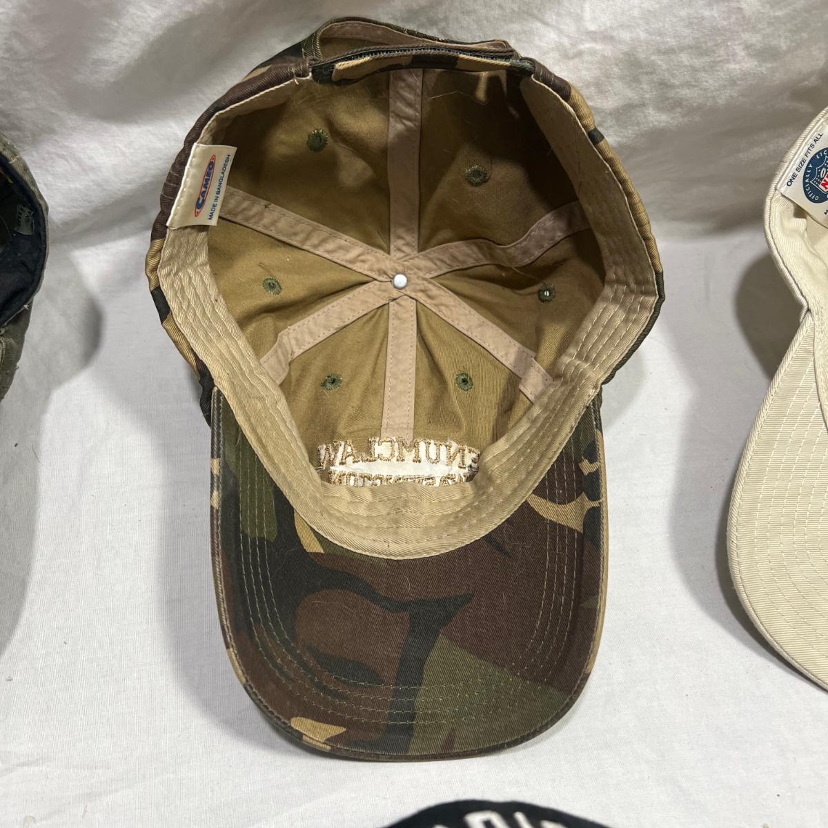 4 hats one with an unknown signature