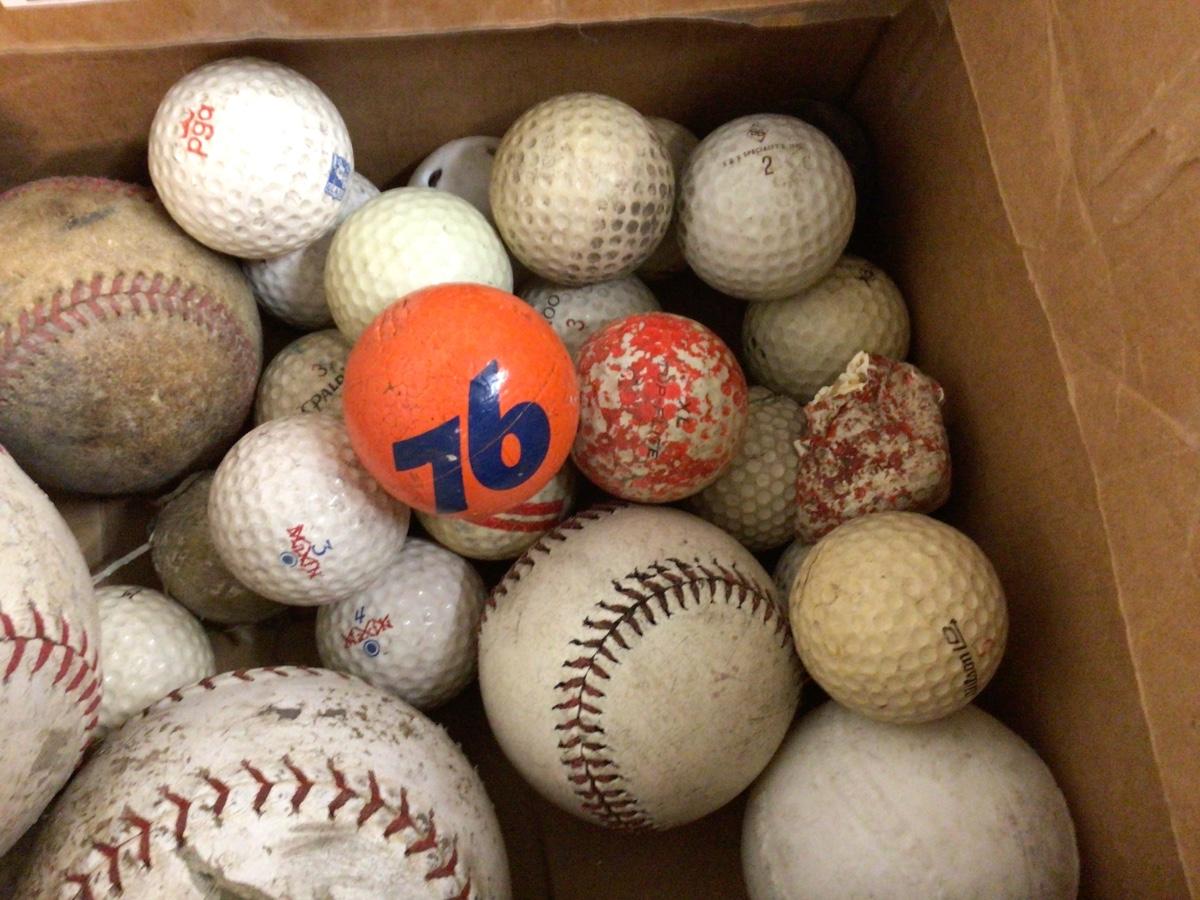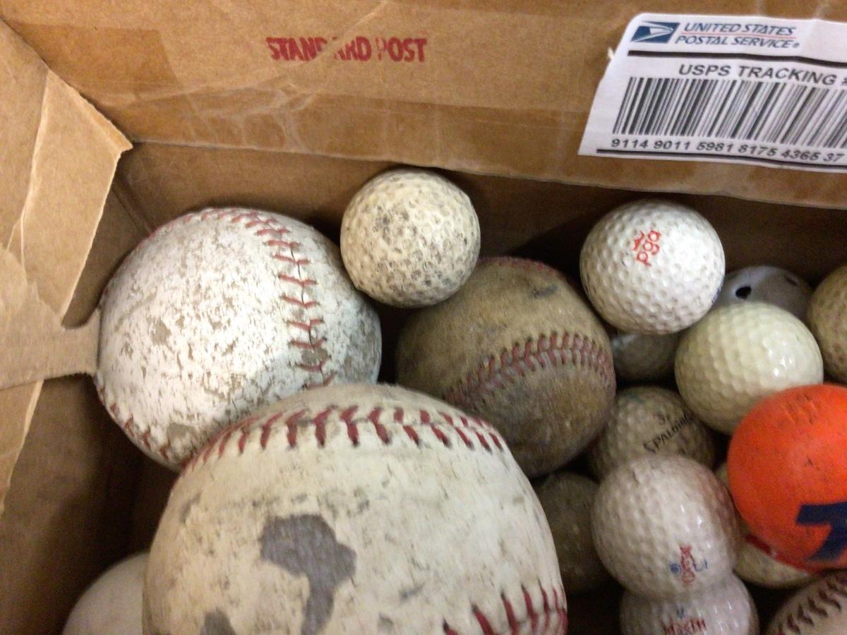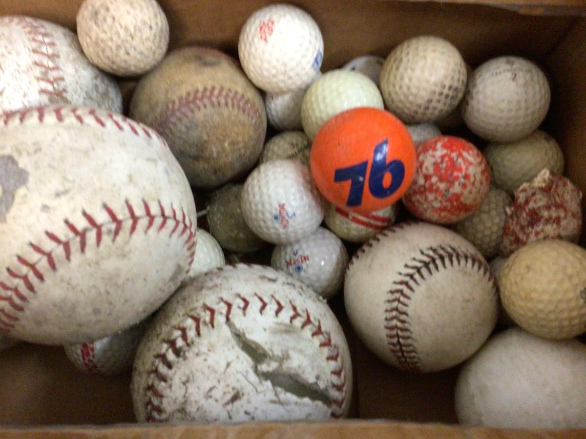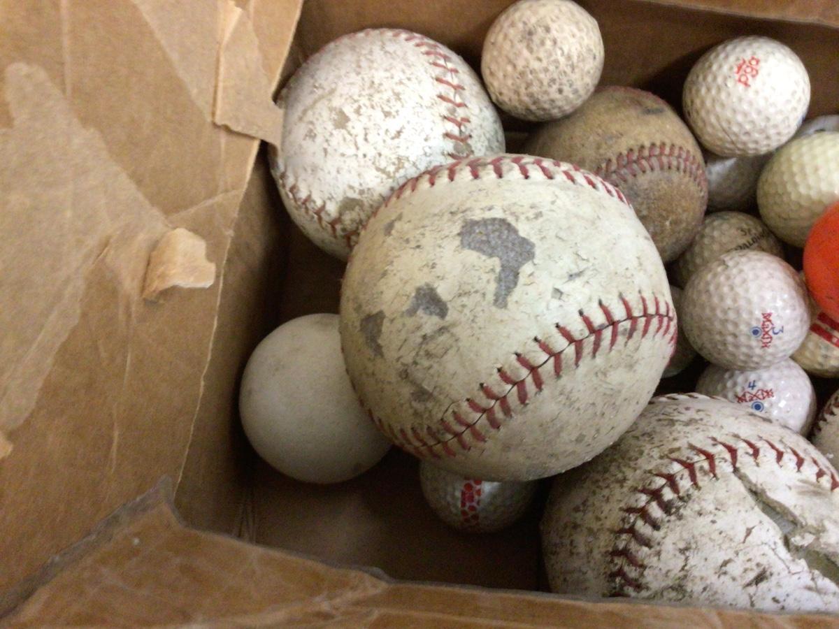Baseball, softball, golf balls and a 76 gas styrofoam antenna ball. All used for practice or at the lakes.
