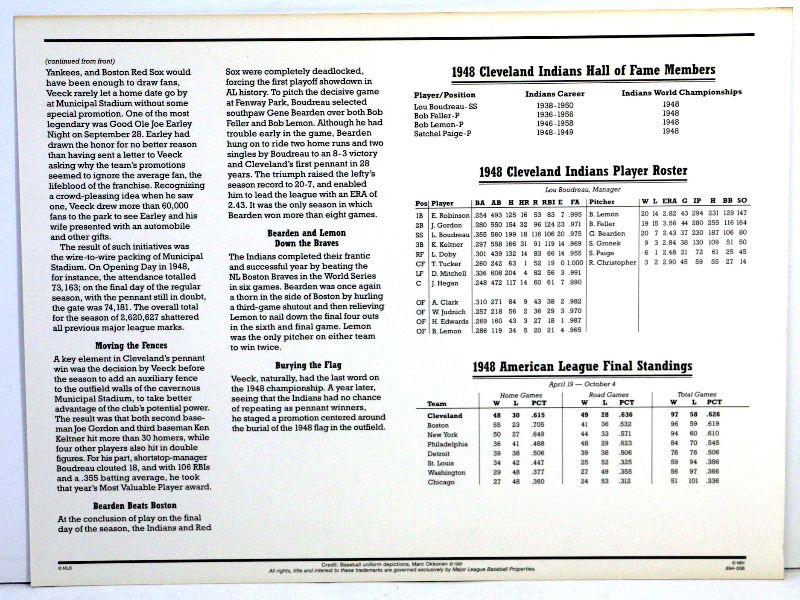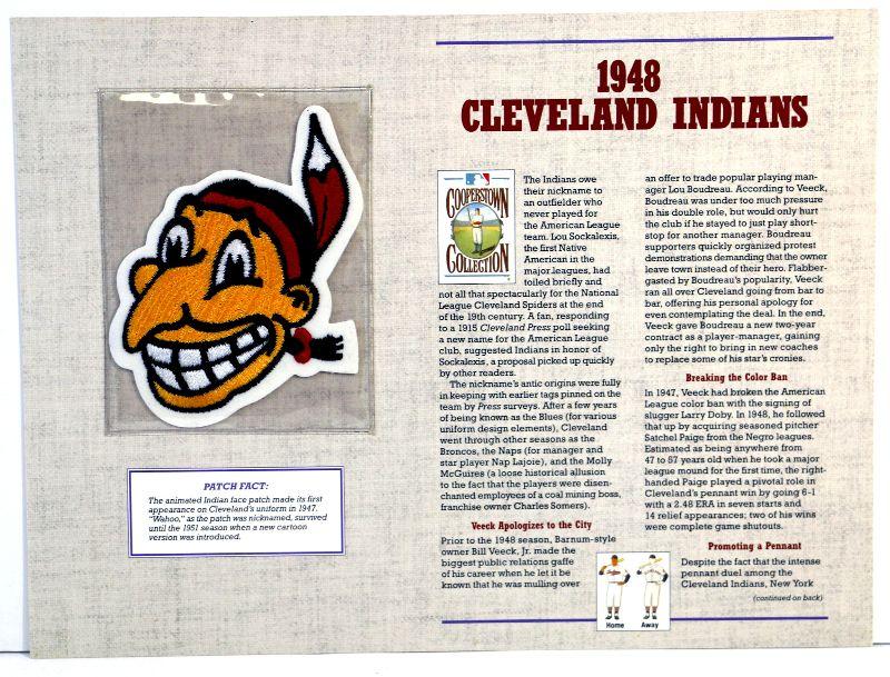 1948 Cleveland Indians Official MLB Team Patch from Cooperstown Collection by Willabee & Ward, comes in protective sleeve with statistics and info card.