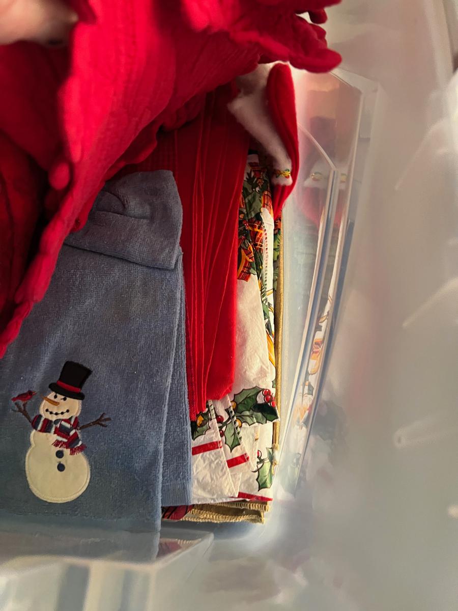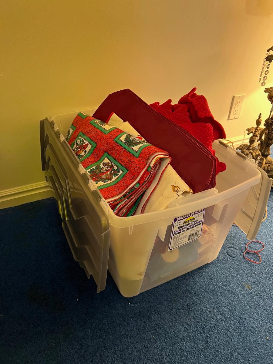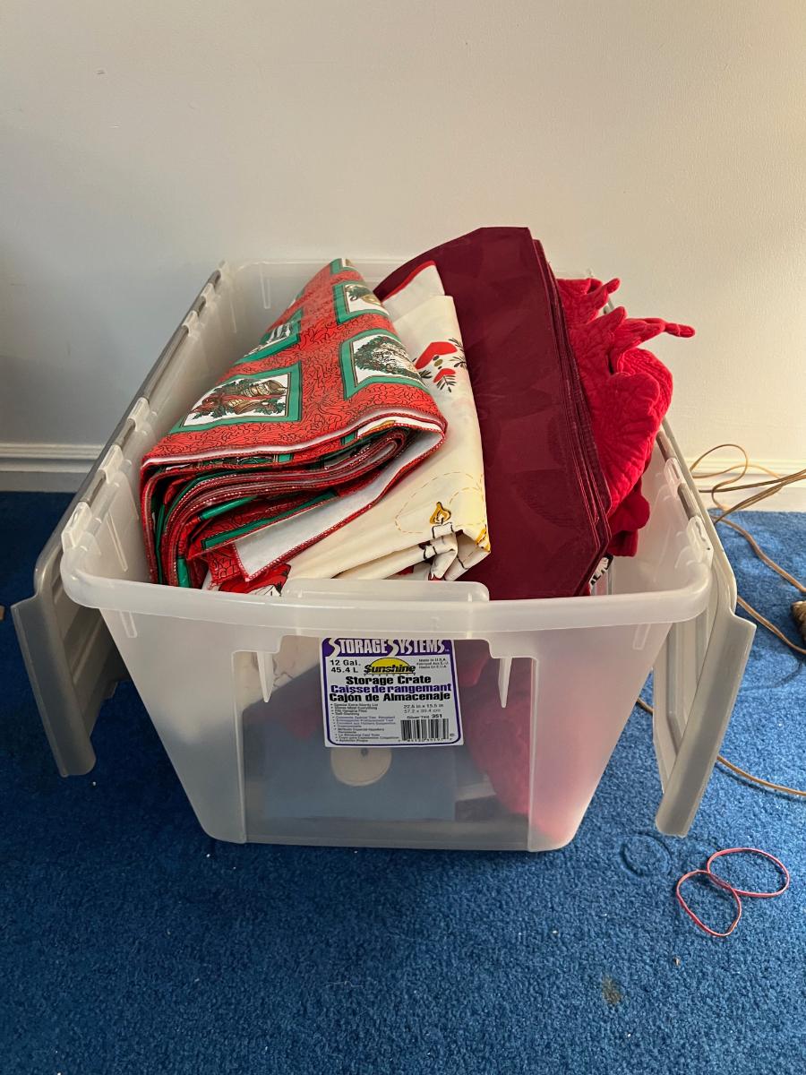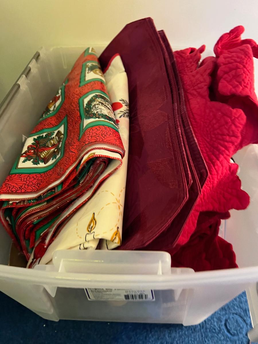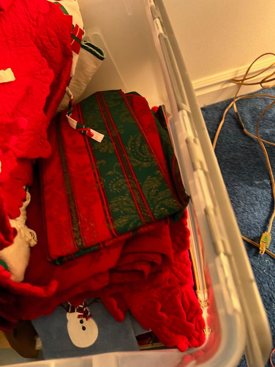 Basement: Tub full of Christmas Linens