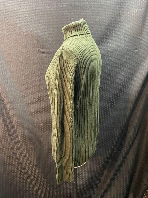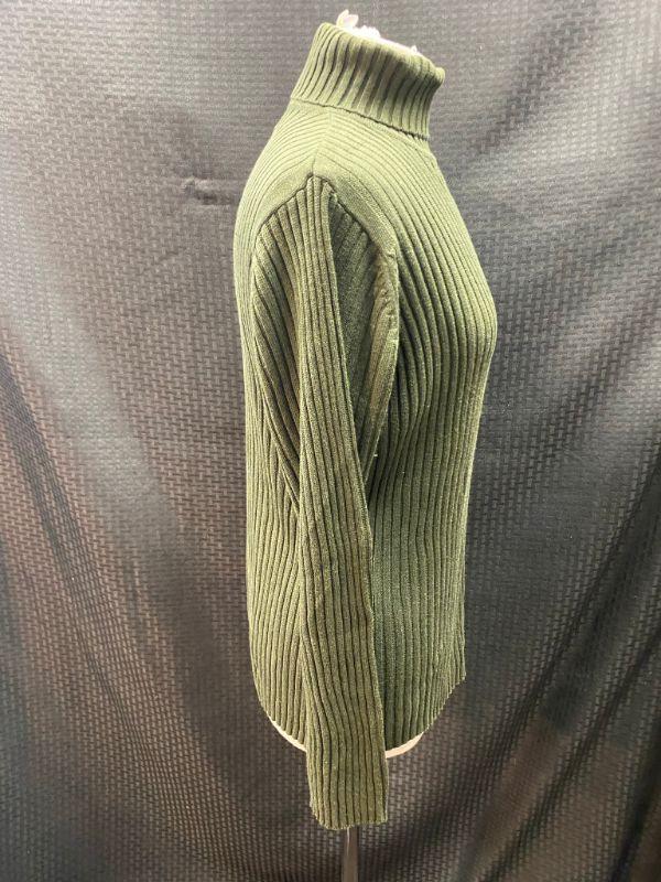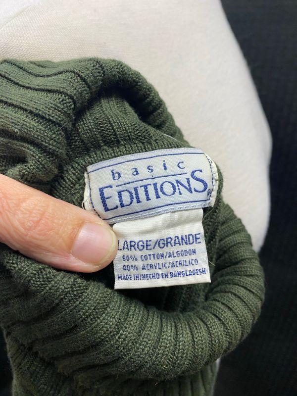 Basic Editions turtleneck sweater. Woman's size Large. Forrest green ribbed sweater. Good condition. It is a darker green like the last photo, camera was not cooperating with the color.