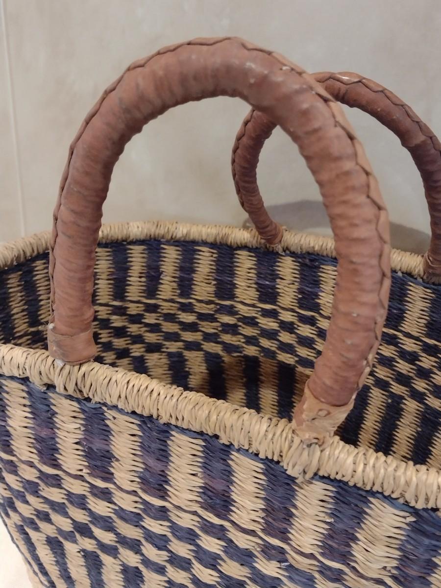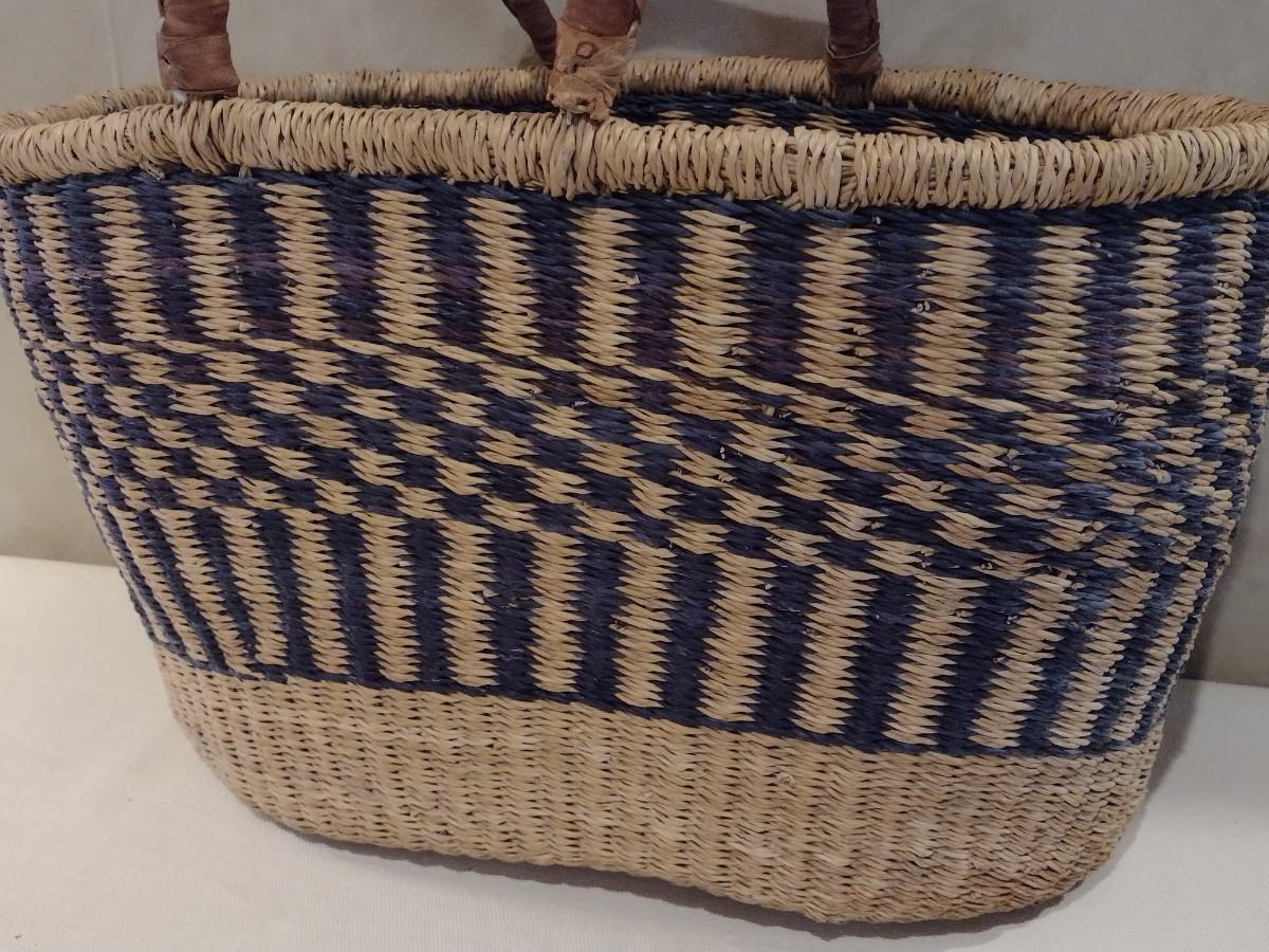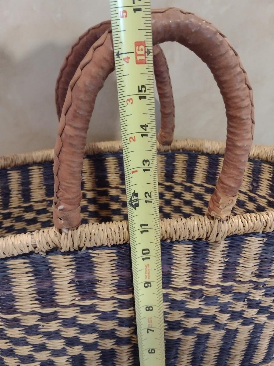 Hand Woven Native American Basket with Leather Wrapped Handles