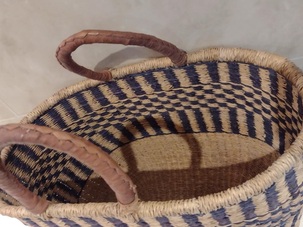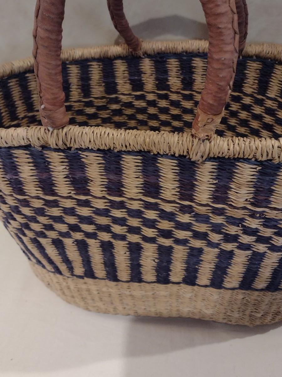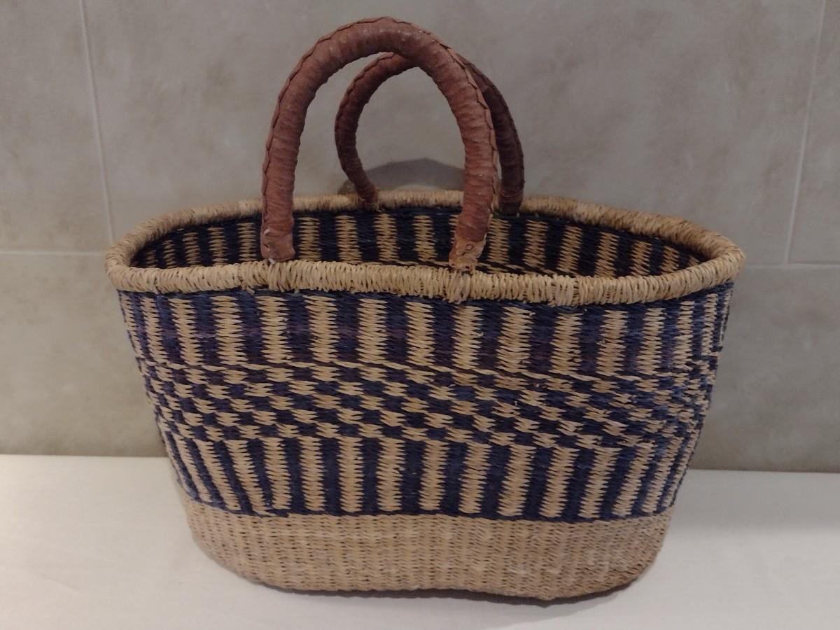 Hand Woven Native American Basket with Leather Wrapped Handles