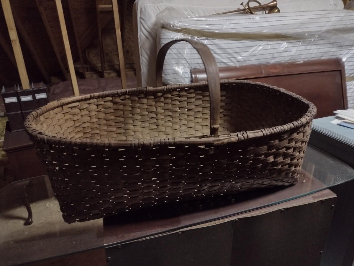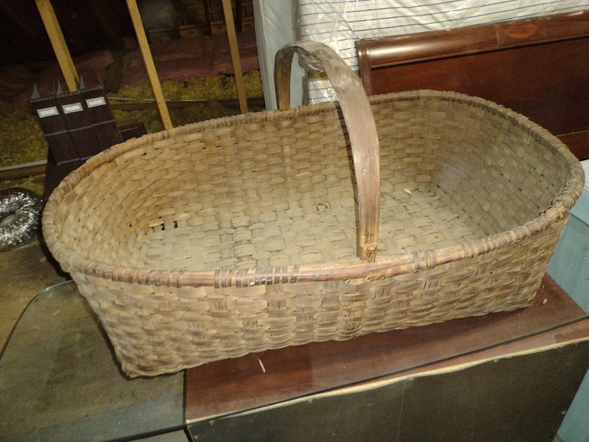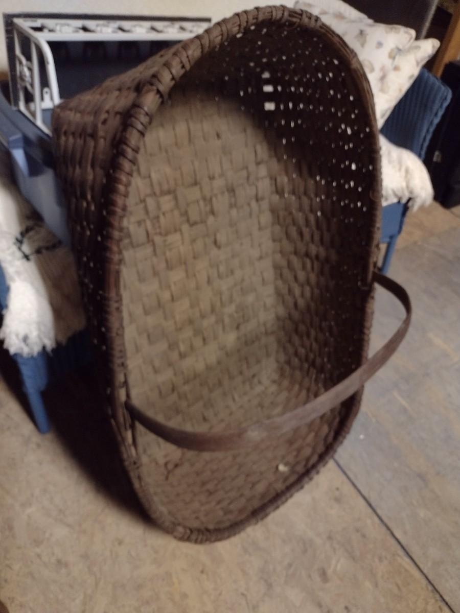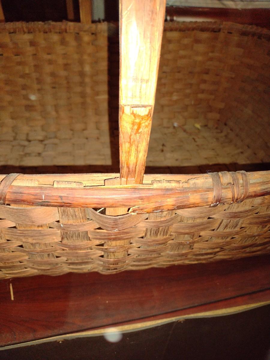 Large Spint Oak Wood Gathering Basket one side of the handle has come loose as shown