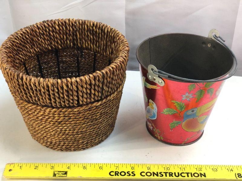 Wicker Basket and Colorful Pail YD#020-1220-04013