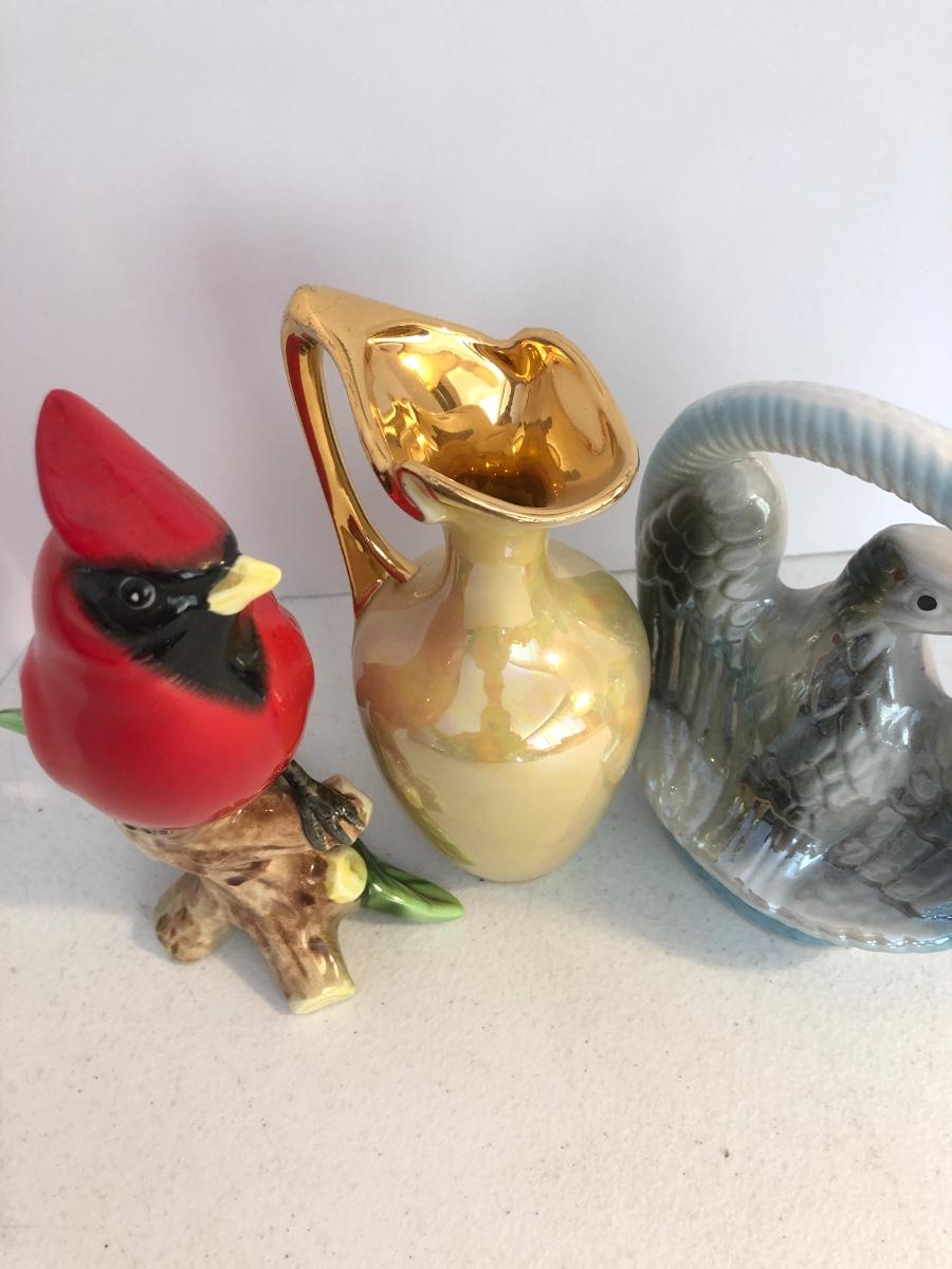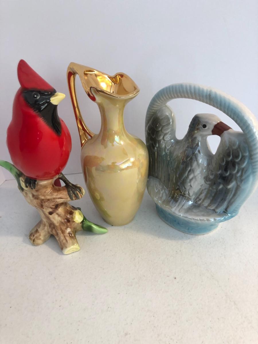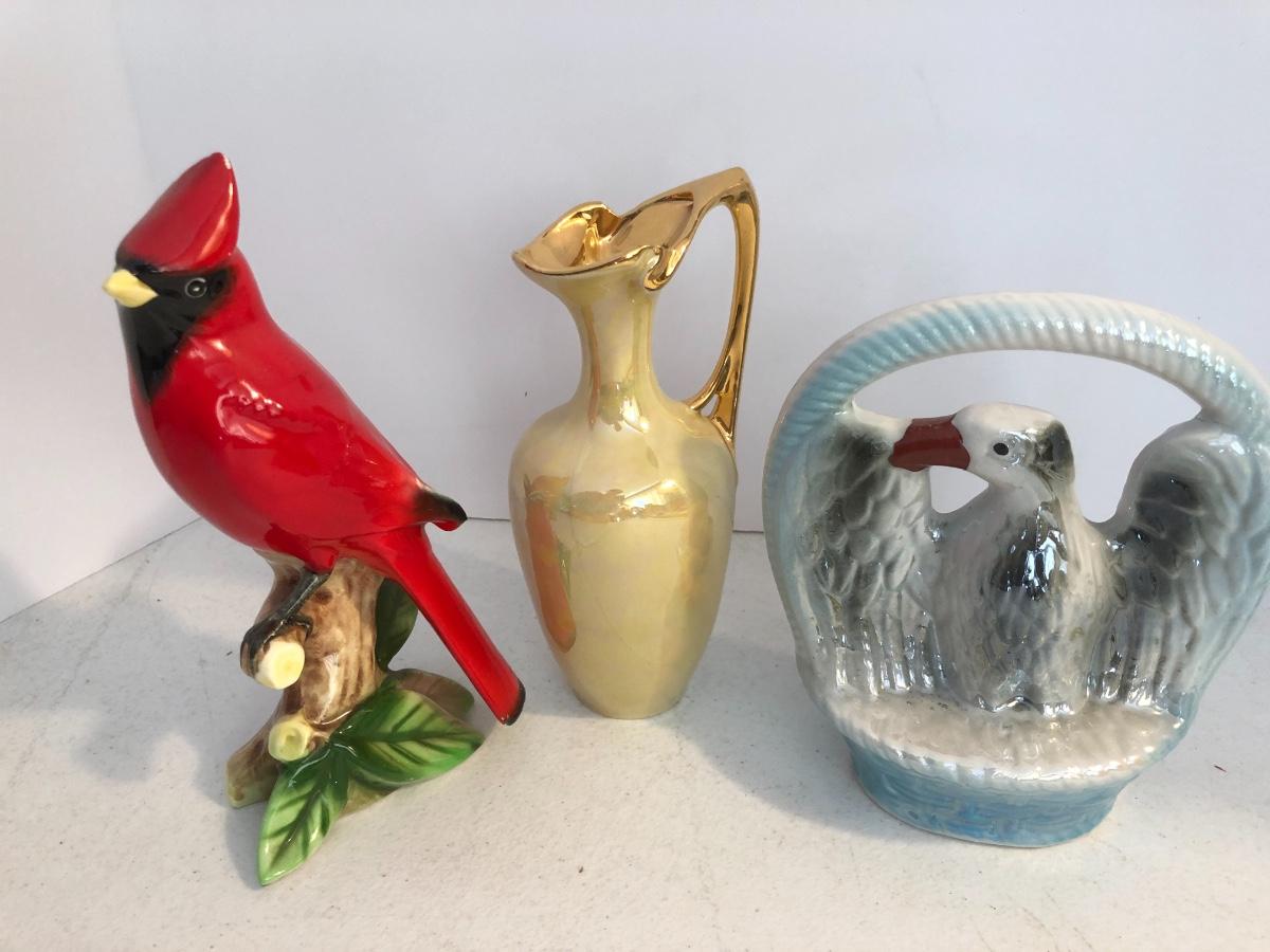 VTG Lusterware Bird in Basket-Brazil, Norcrest Cardinal-Japan & Vase