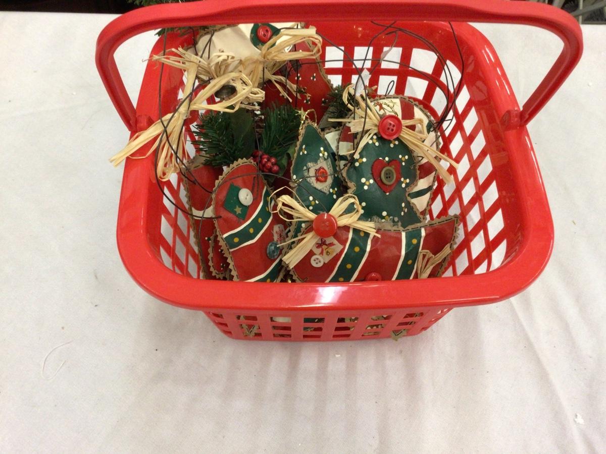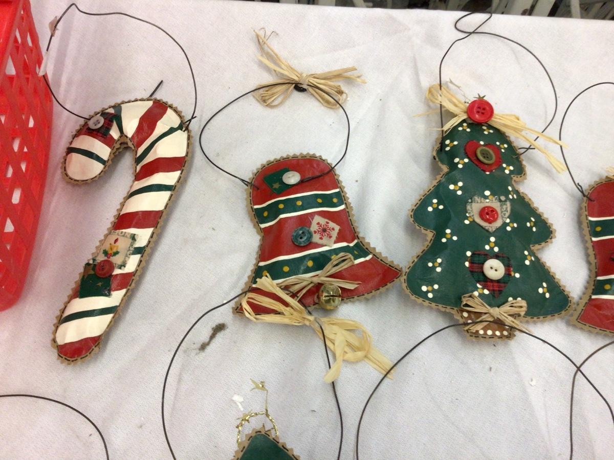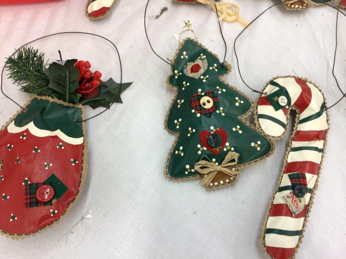 You get 10 vinyl Christmas ornaments. There are two trees, two mittens, two candy canes, two bells, and one stocking.