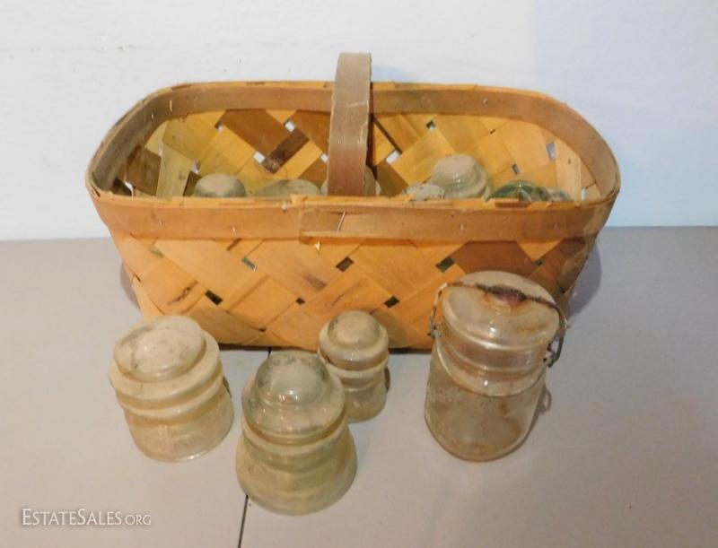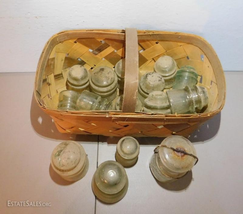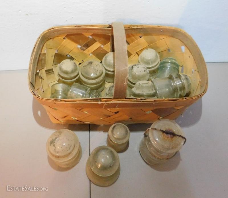 Approximately 16 pieces of glass insulators various sizes and shapes. Most seem to be in good condition but are in need of cleaning.