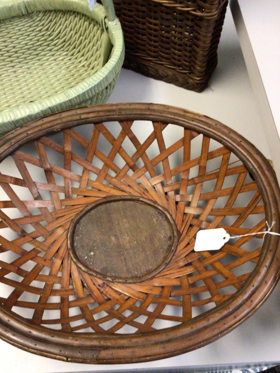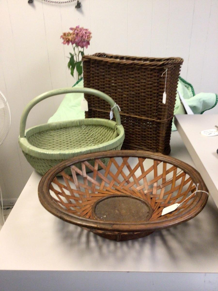 You get three nice baskets.one is open bowl type, one is oval with handle, one is square. All in good condition.
