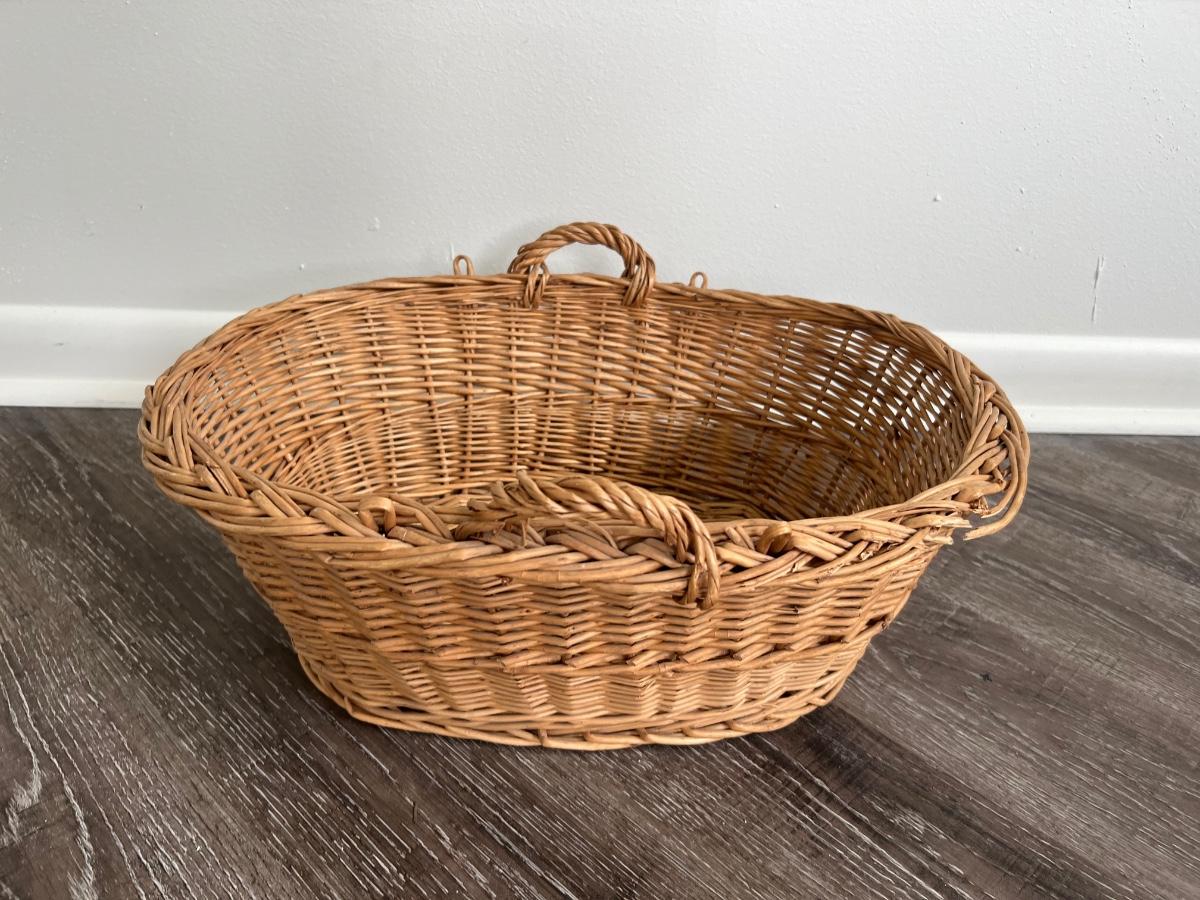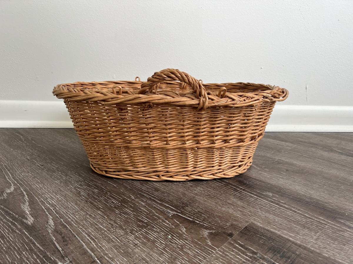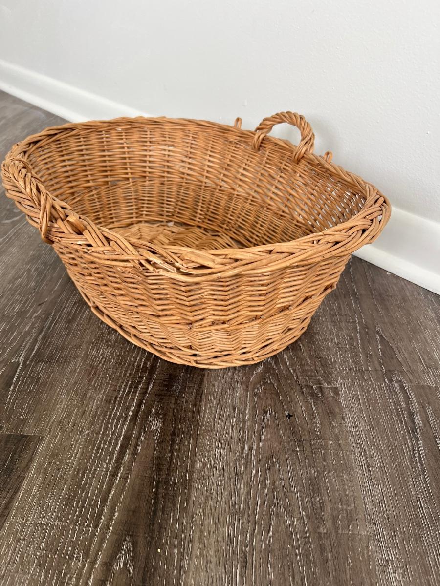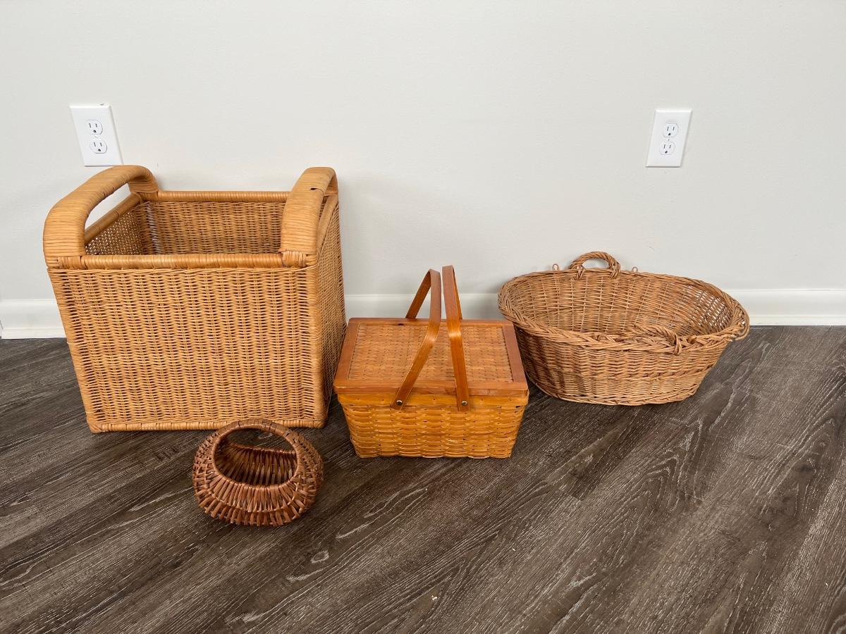 Basket Lot In order. Biggest measures 17 inches tall, 17 inches wide and 15 inches deep. Picnic basket measures 7 inches tall, 13 inches wide and 1o inches deep. Oval basket measures 7 inches tall, 20 inches wide and 16 inches deep. Small basket 6 inches tall, 8 inches wide and 5 inches deep.