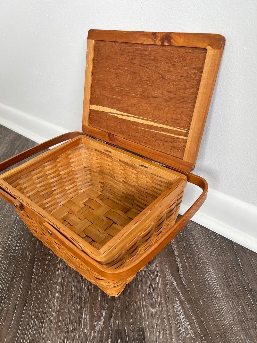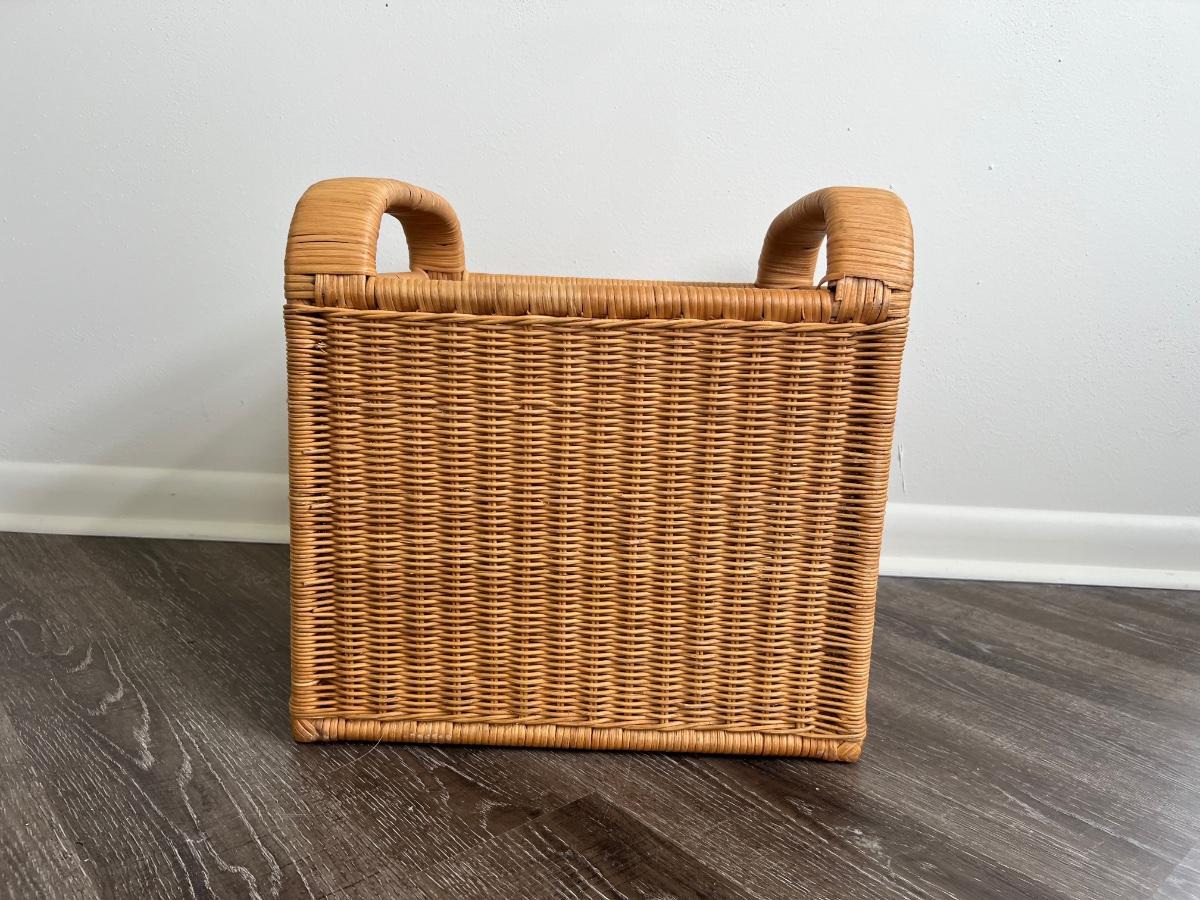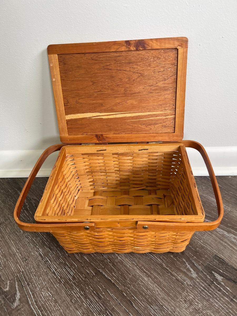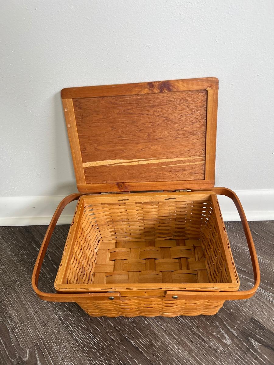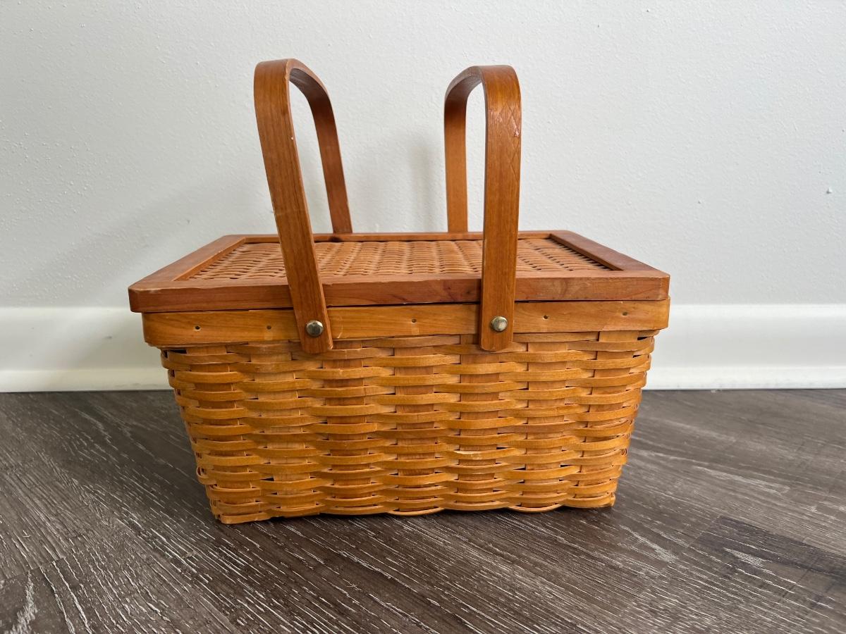 Basket Lot In order. Biggest measures 17 inches tall, 17 inches wide and 15 inches deep. Picnic basket measures 7 inches tall, 13 inches wide and 1o inches deep. Oval basket measures 7 inches tall, 20 inches wide and 16 inches deep. Small basket 6 inches tall, 8 inches wide and 5 inches deep.