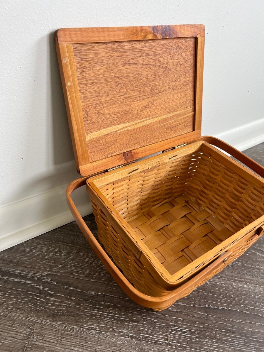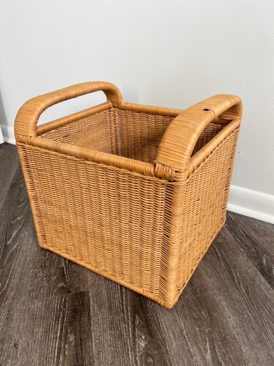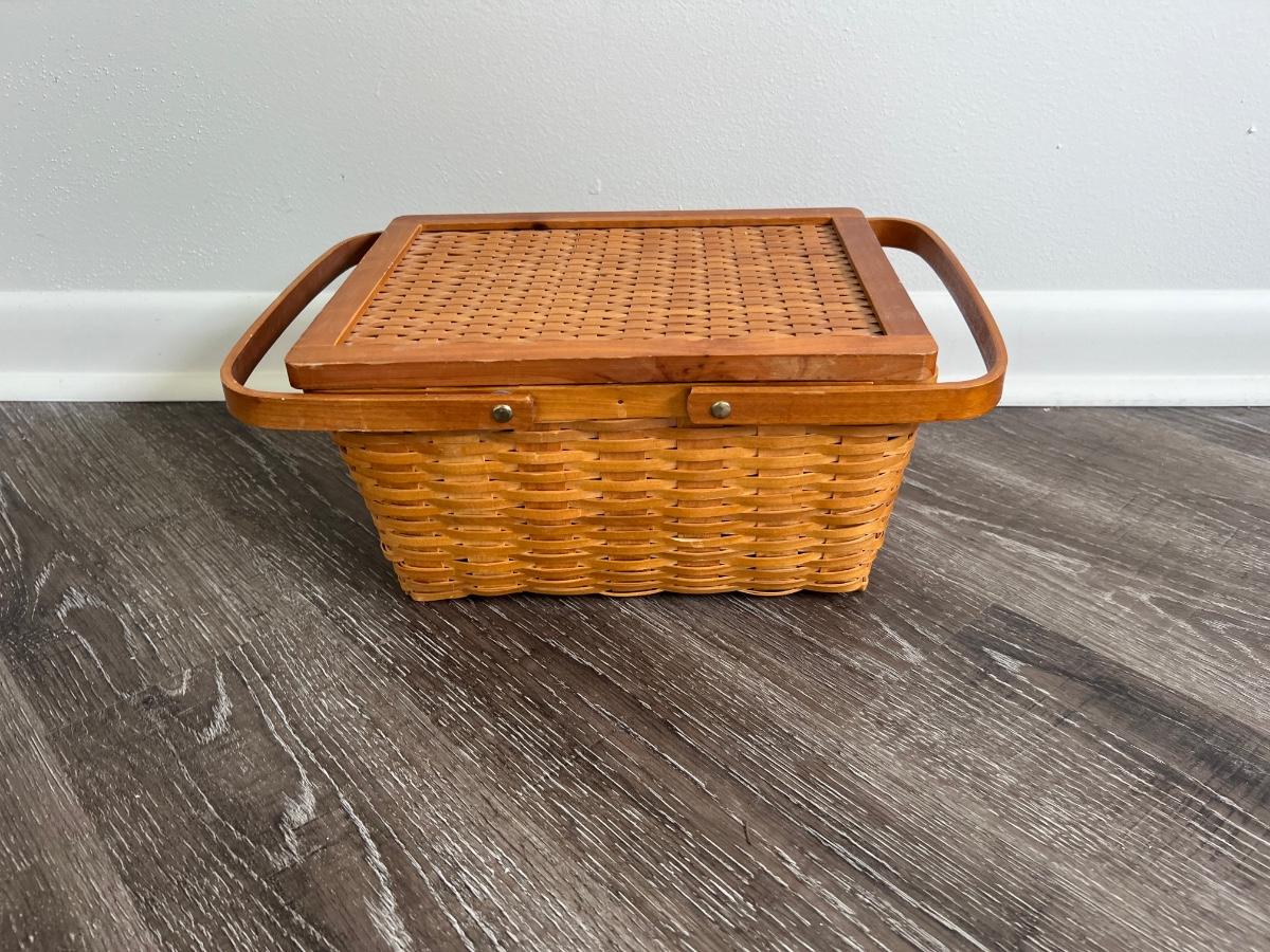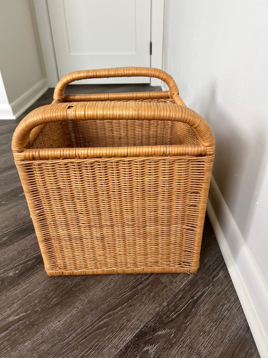 Basket Lot In order. Biggest measures 17 inches tall, 17 inches wide and 15 inches deep. Picnic basket measures 7 inches tall, 13 inches wide and 1o inches deep. Oval basket measures 7 inches tall, 20 inches wide and 16 inches deep. Small basket 6 inches tall, 8 inches wide and 5 inches deep.