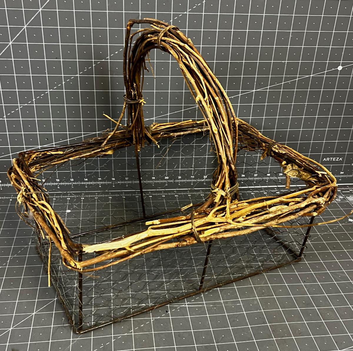 Basket made of Wire and Twigs