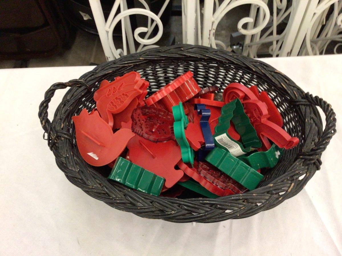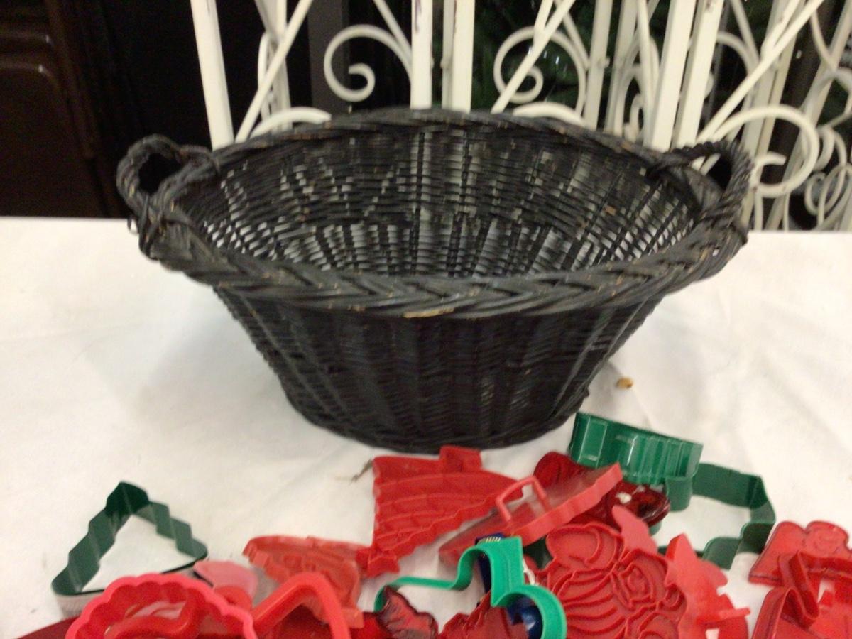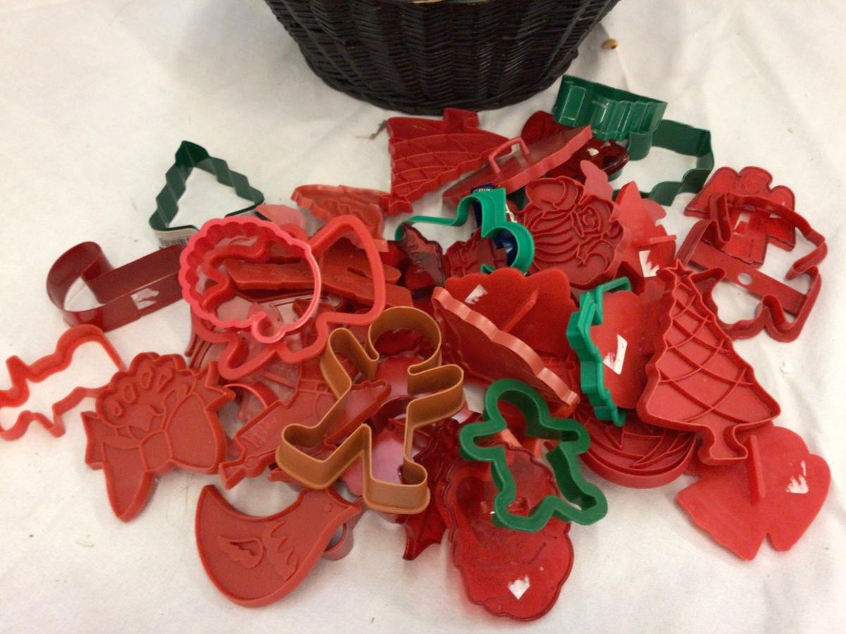 You get a basket full of metal and plastic Christmas cookie cutters.