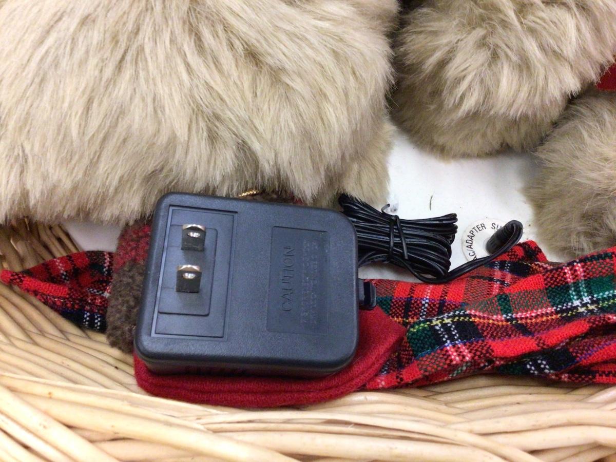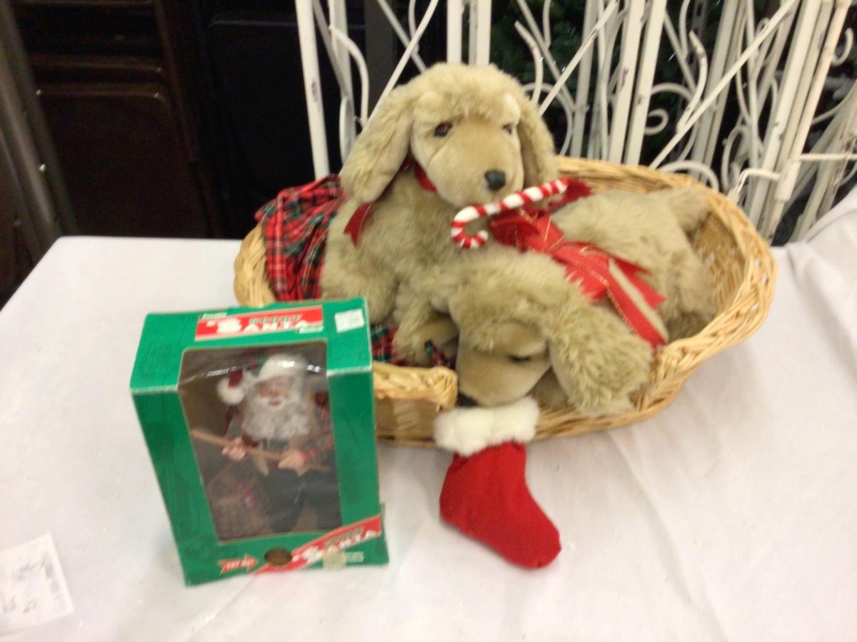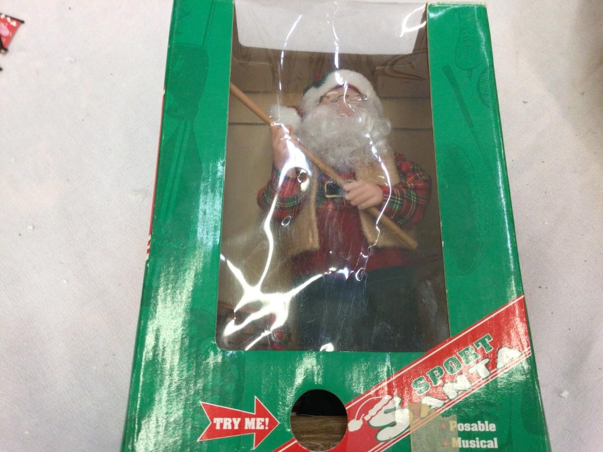 You get a basket with Cocker Spaniels with cord, not tested, you also get a fishing Santa in box.