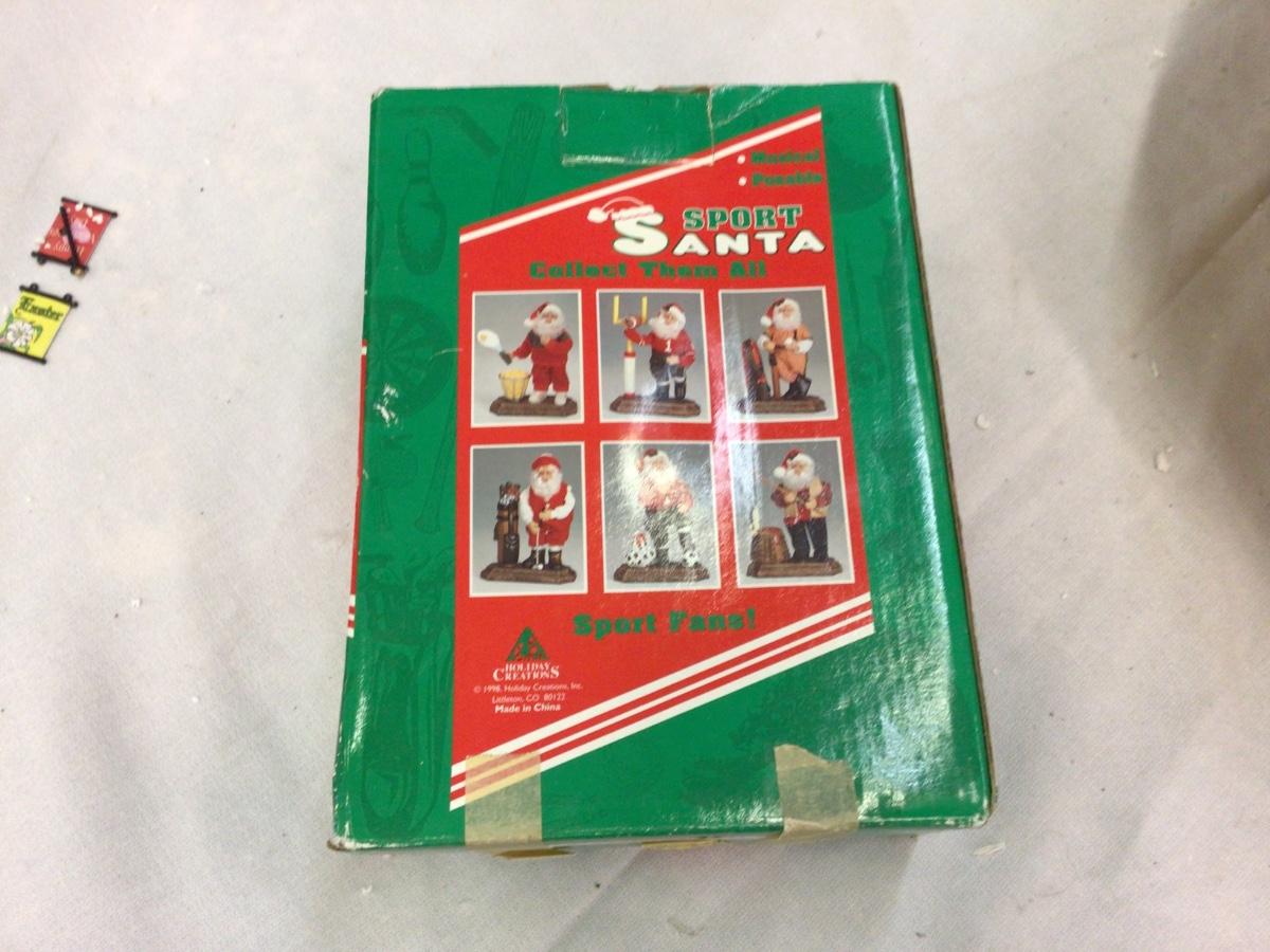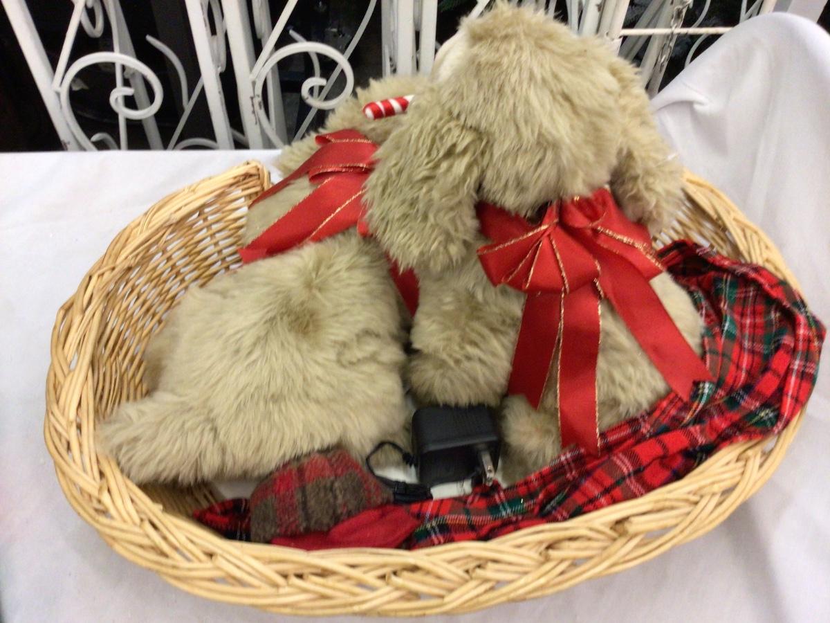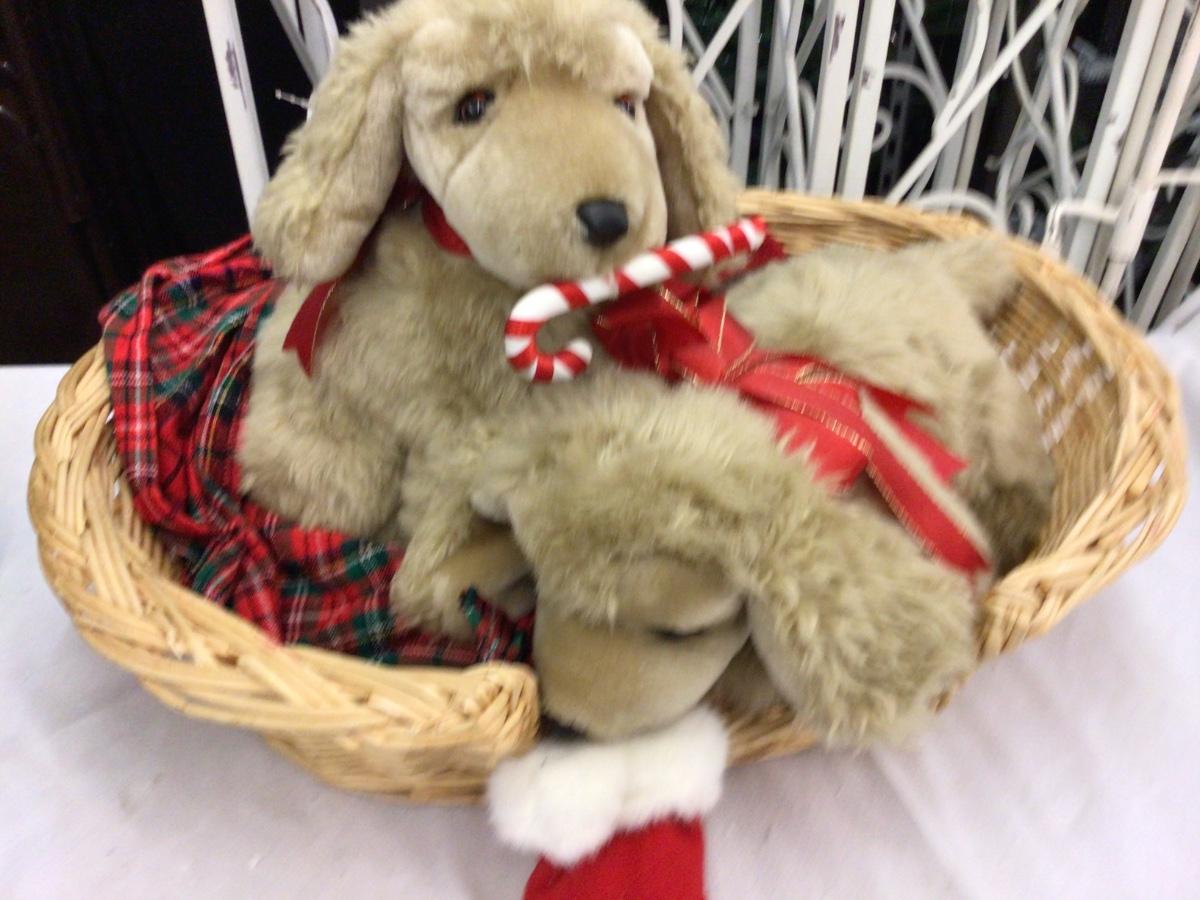 You get a basket with Cocker Spaniels with cord, not tested, you also get a fishing Santa in box.