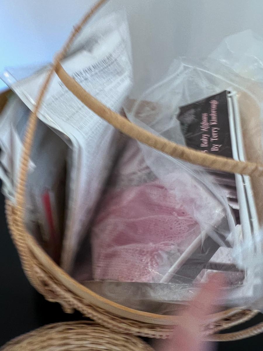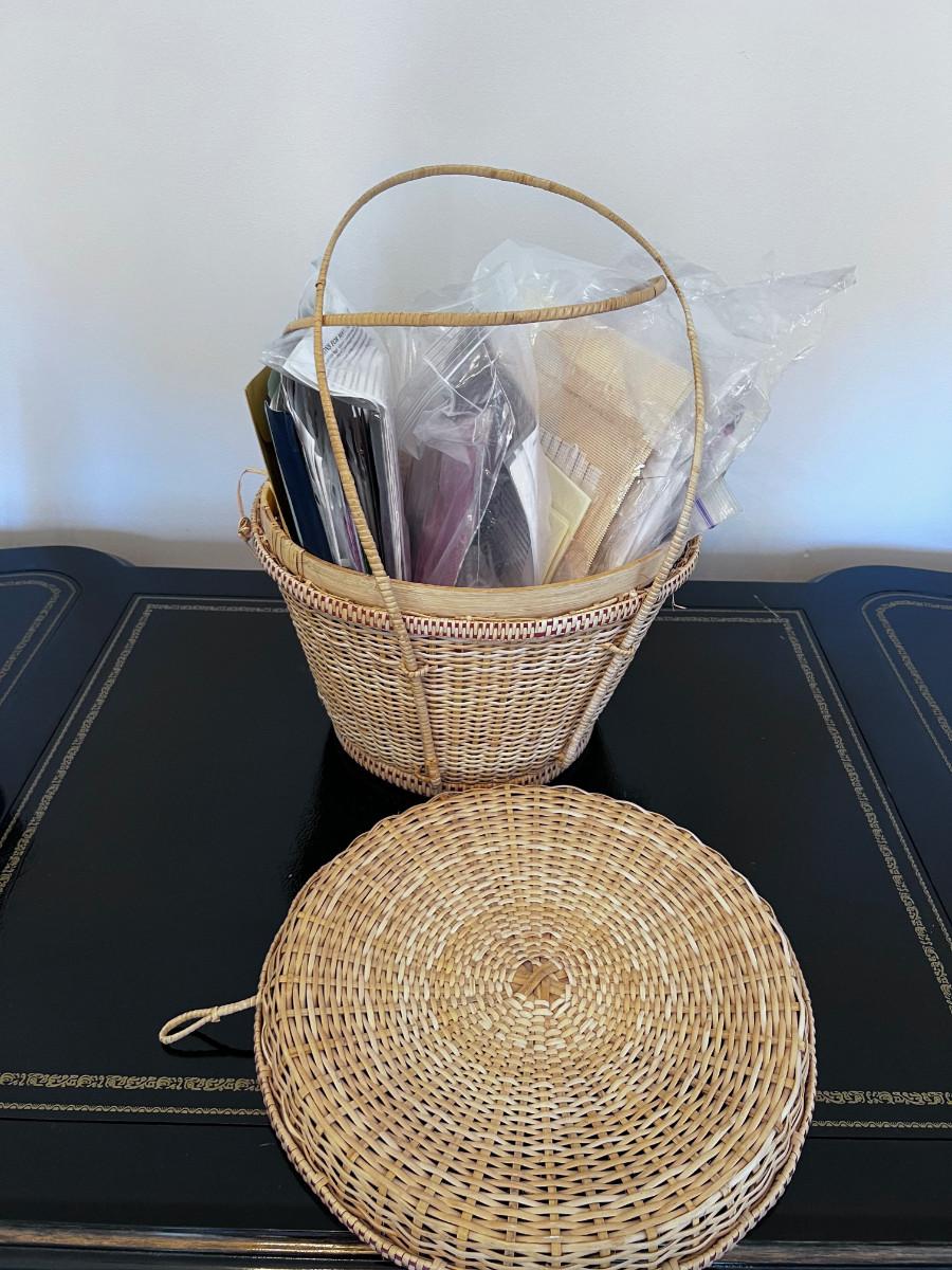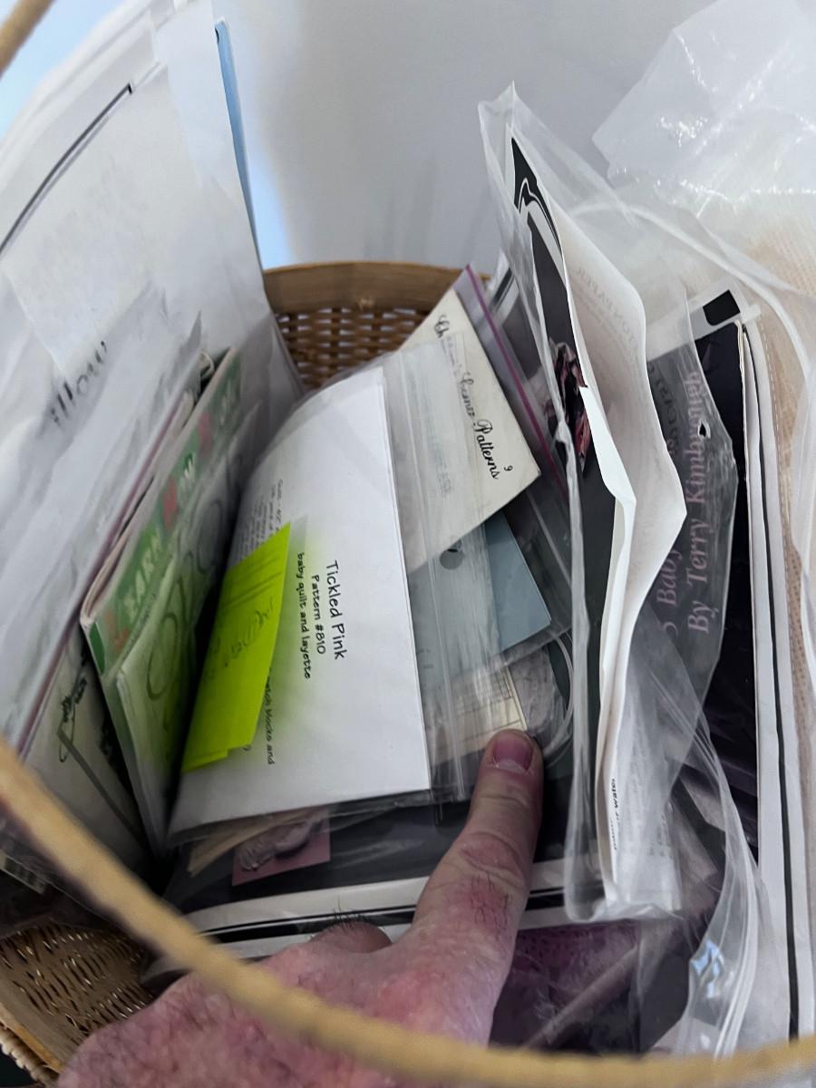 Basket of Crafting Patterns and Such. Basket is extra COOL!