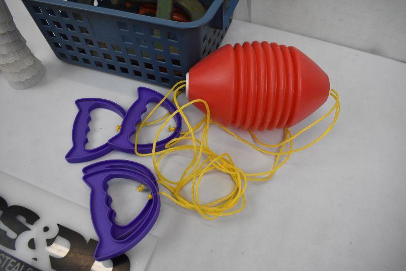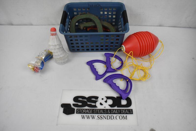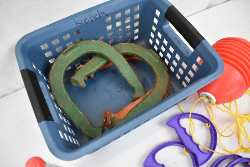 Basket of Outdoor Games: Birdies, Metal Horseshoes, Darts