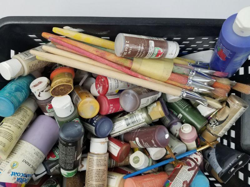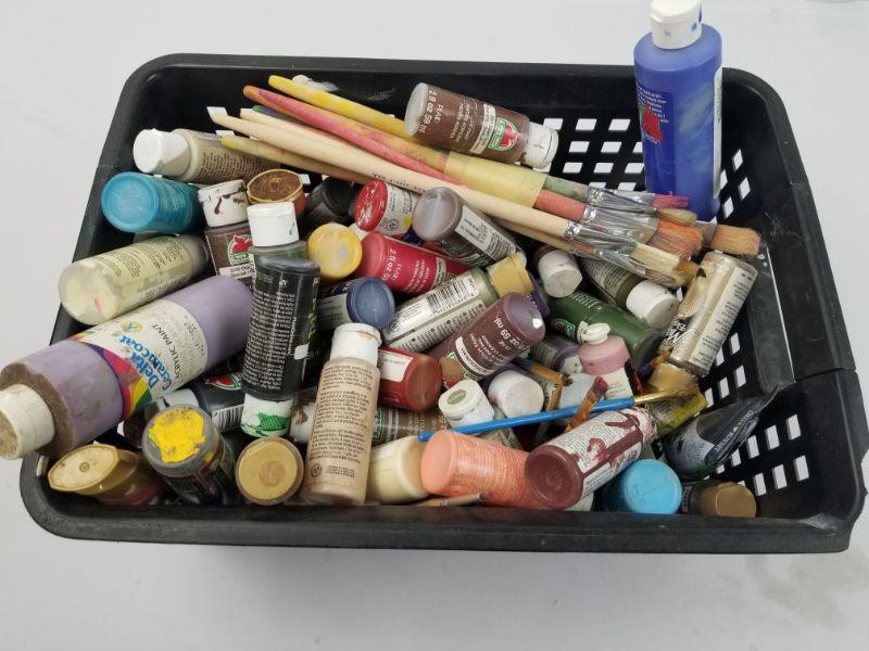 Basket of Paint Brushes and Paints