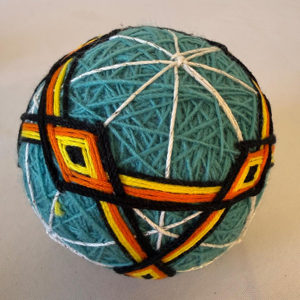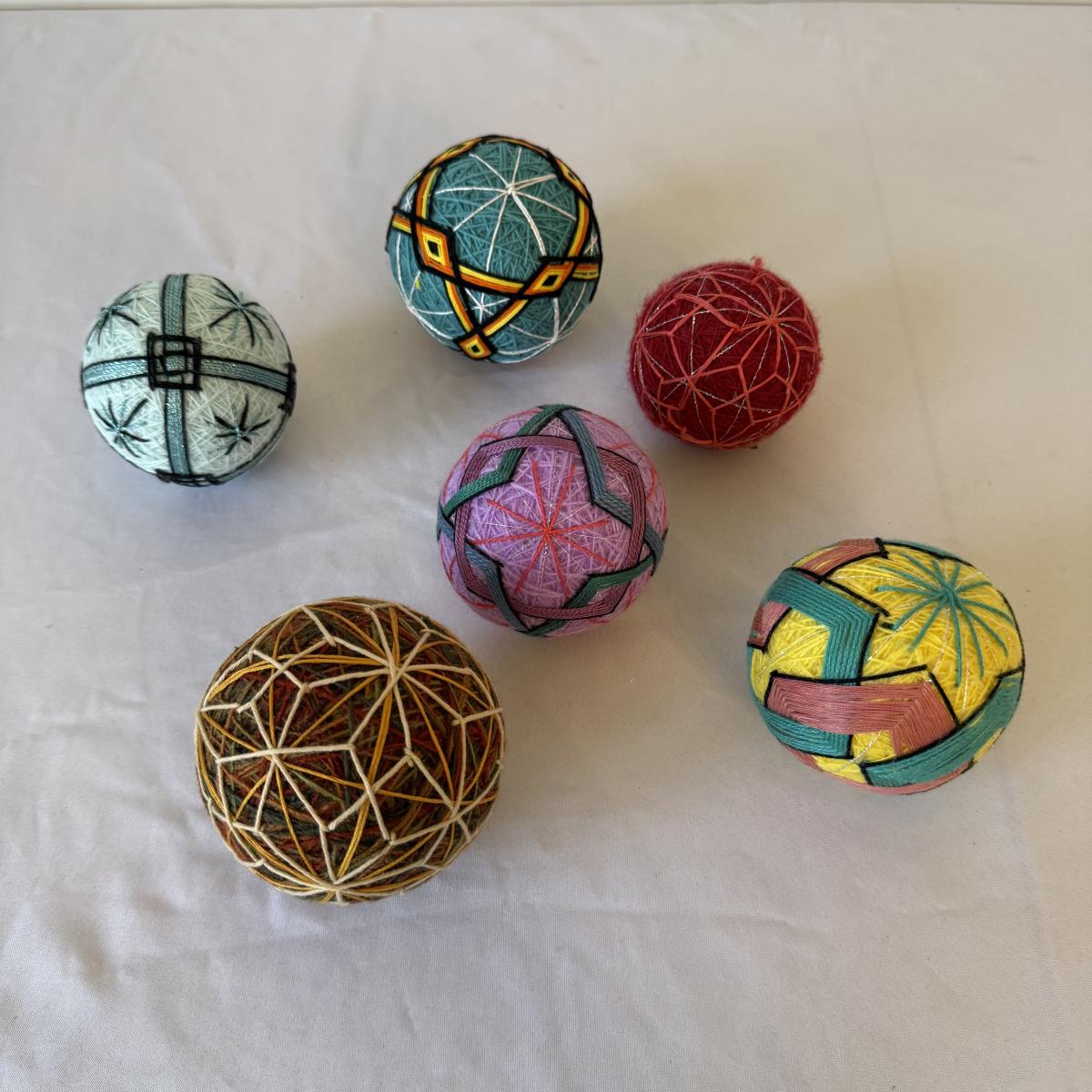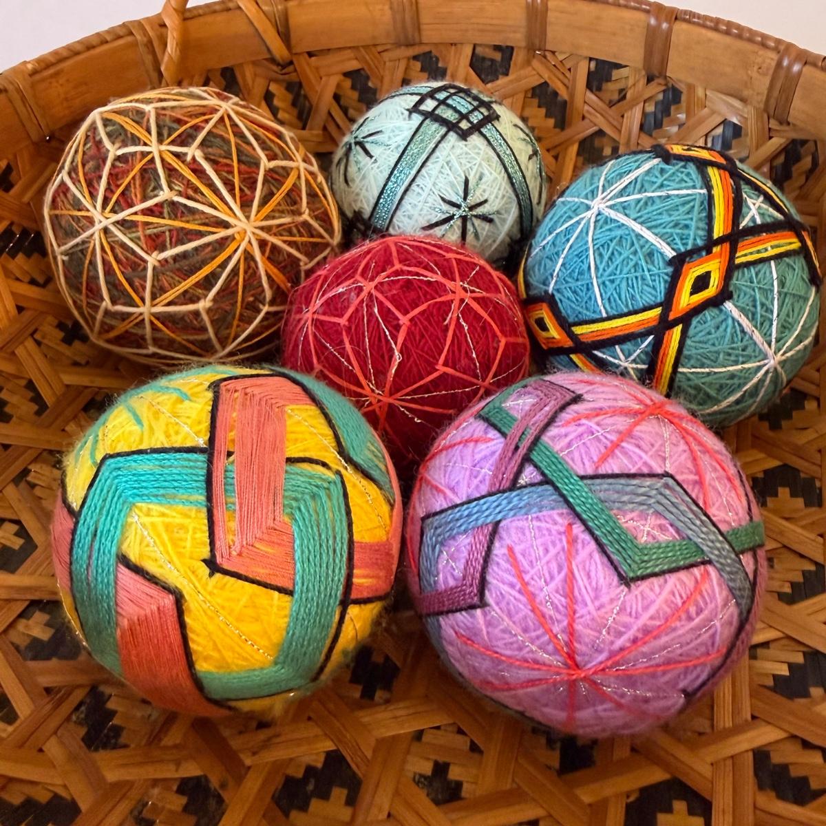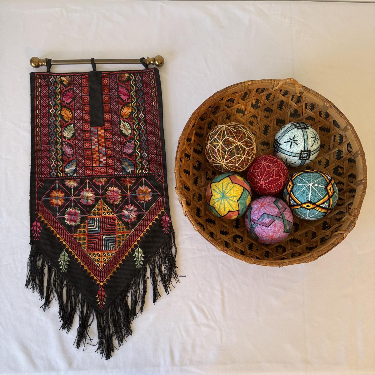 Basket of Temari Balls with Two Cross Stitch Wall Hangings (E-HS)