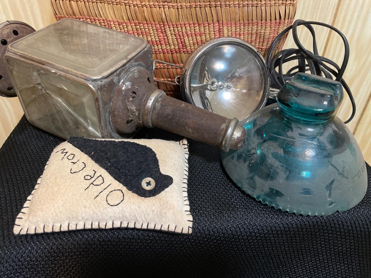 Includes vintage lights, insulator, and small pillow