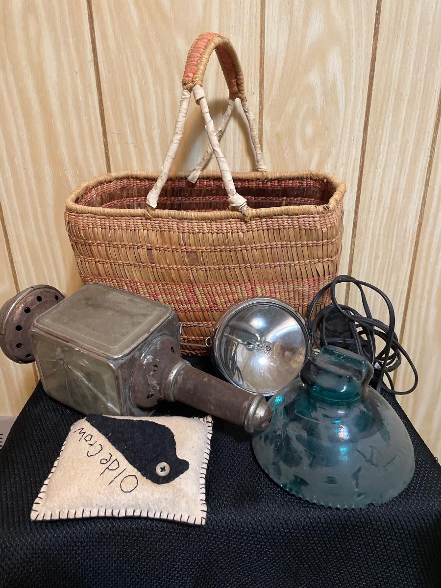Basket of vintage items