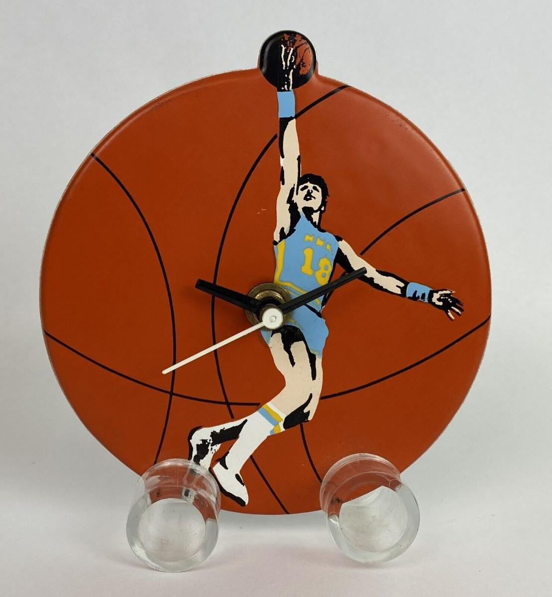 Novelty Basketball clock..running..quartz movement..runs on a single AA...Six inches high by 5 inches wide...Slight use...as shown...From Small World Greetings