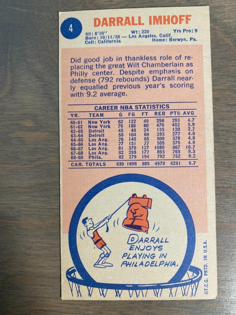 Darrell Imhoff - center - Philadelphia