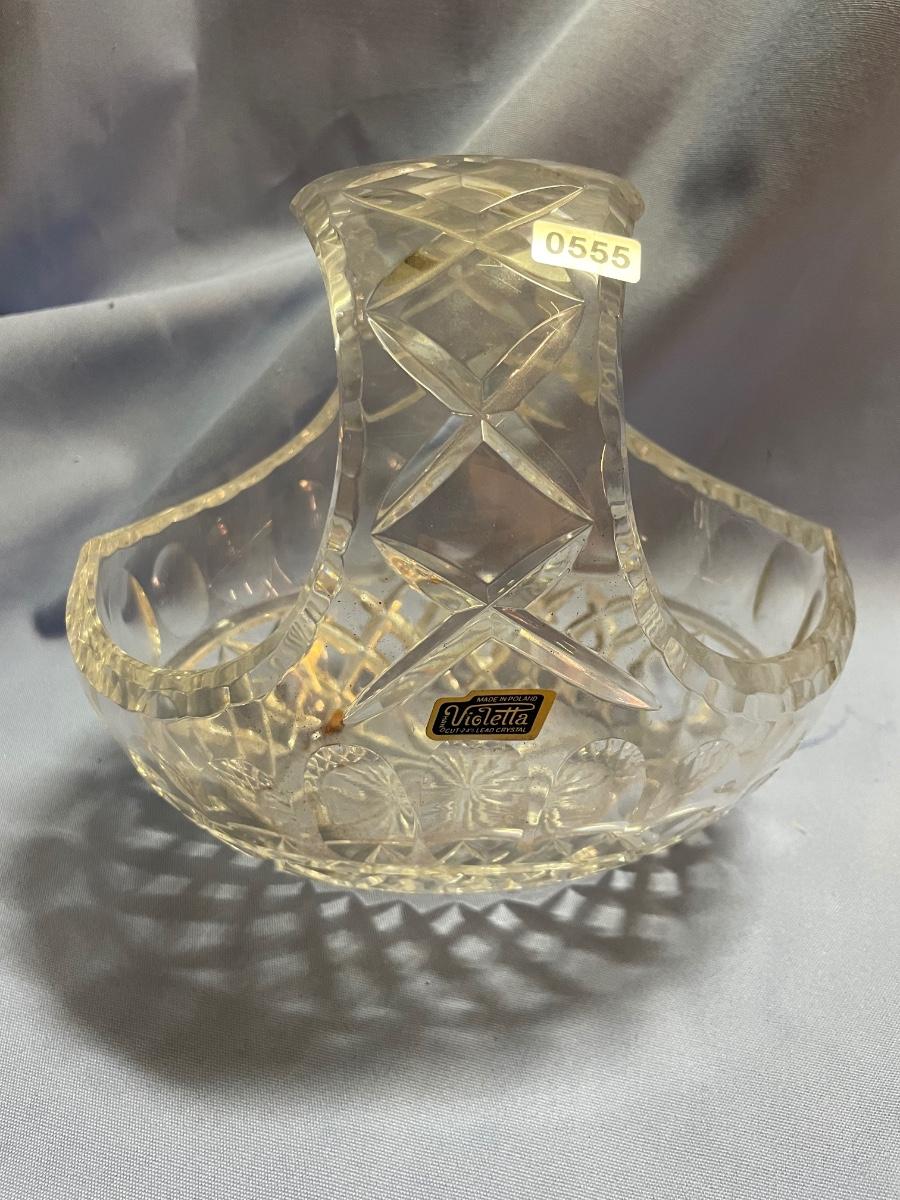 Basket-crystal-hand cut etched Violetta glass