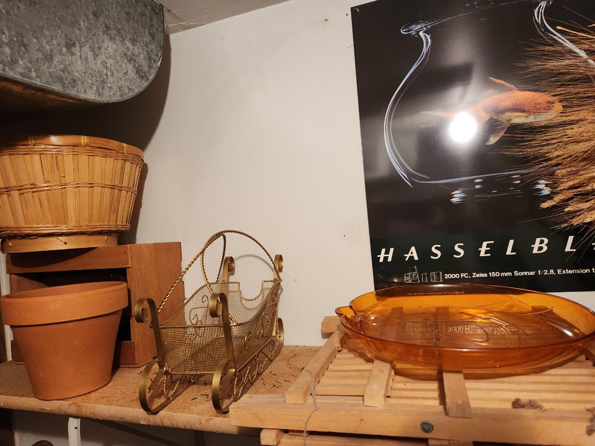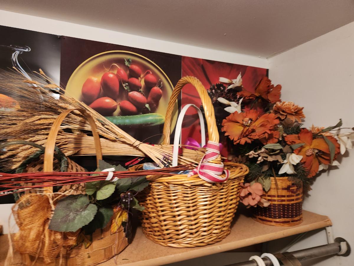 Fall themed decor. comes with baskets, flowers, and pumpkin dish.