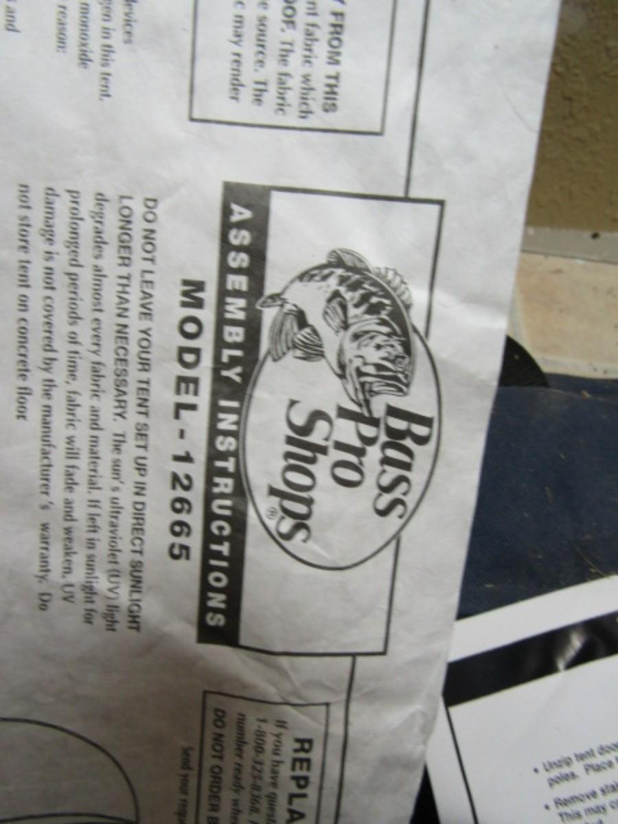 Bass Pro Shop Quick Assemble Camping Tent Model 12665