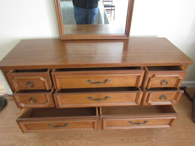 Basset Furniture 8 Drawer Chest with Mirror 57" x 19 1/4" x 30"