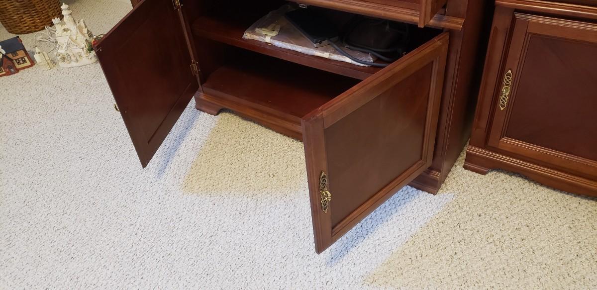 Upper area has 2 doors which slide on into itself on sides with an open space of 36 x41. Large enough for a flat screen.