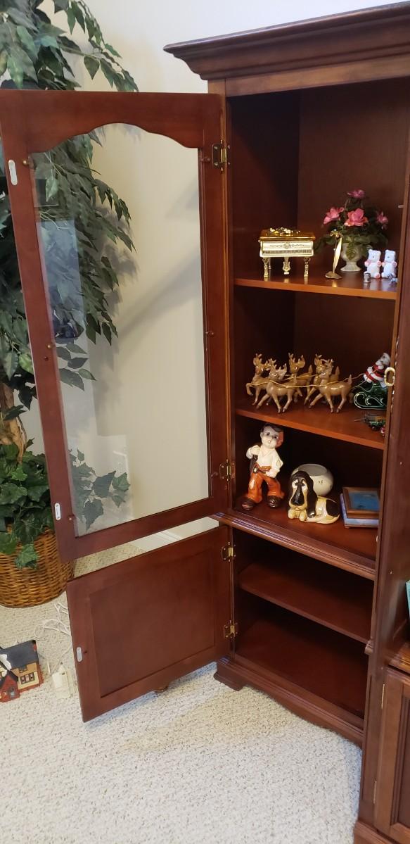 Main section- measures 42" x 21 1/2 x 74" it has 2 solid doors on bottom with 2 shelves.