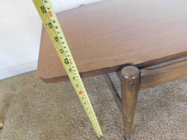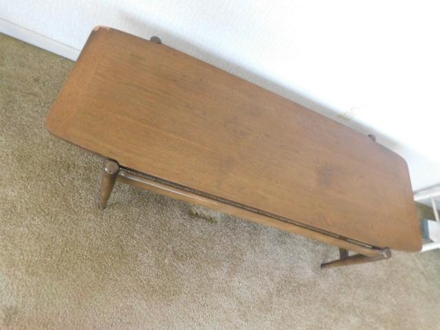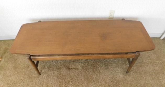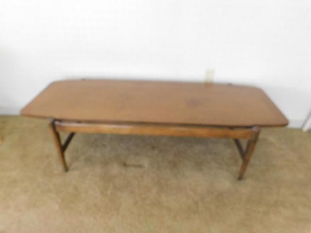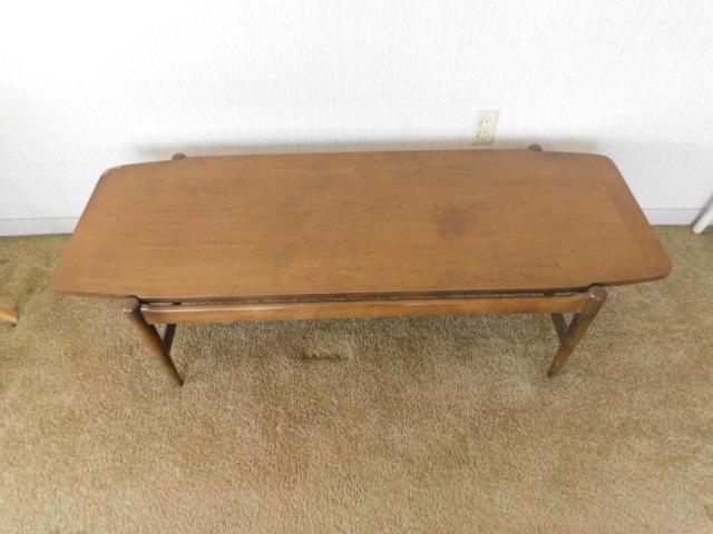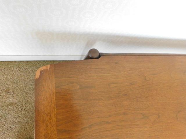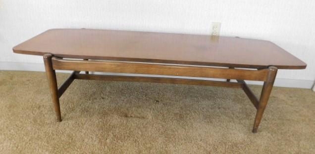 Bassett European Design Coffee Table 56"x23"x15" has some finish missing on one corner. Has some scratches and wear. sleek and appealing design