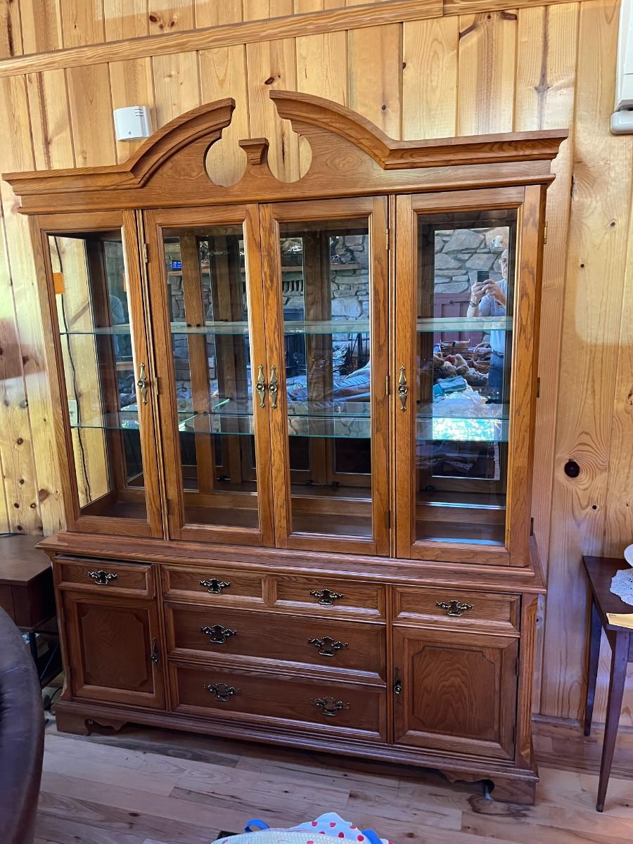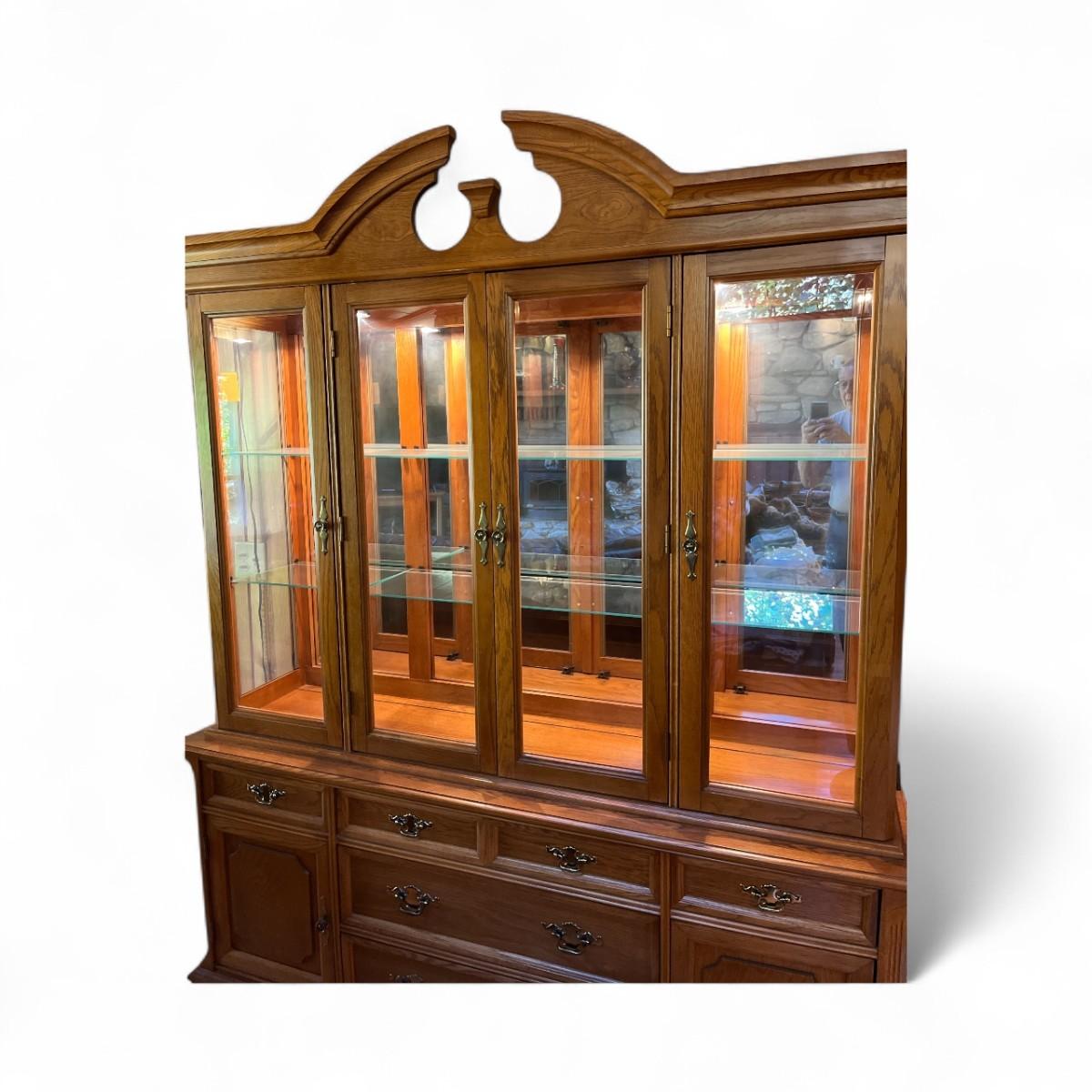 Bassett Furniture Glass Top China Cabinet. Lighted Cabinet.. Glass Shelves in upper Cabinet