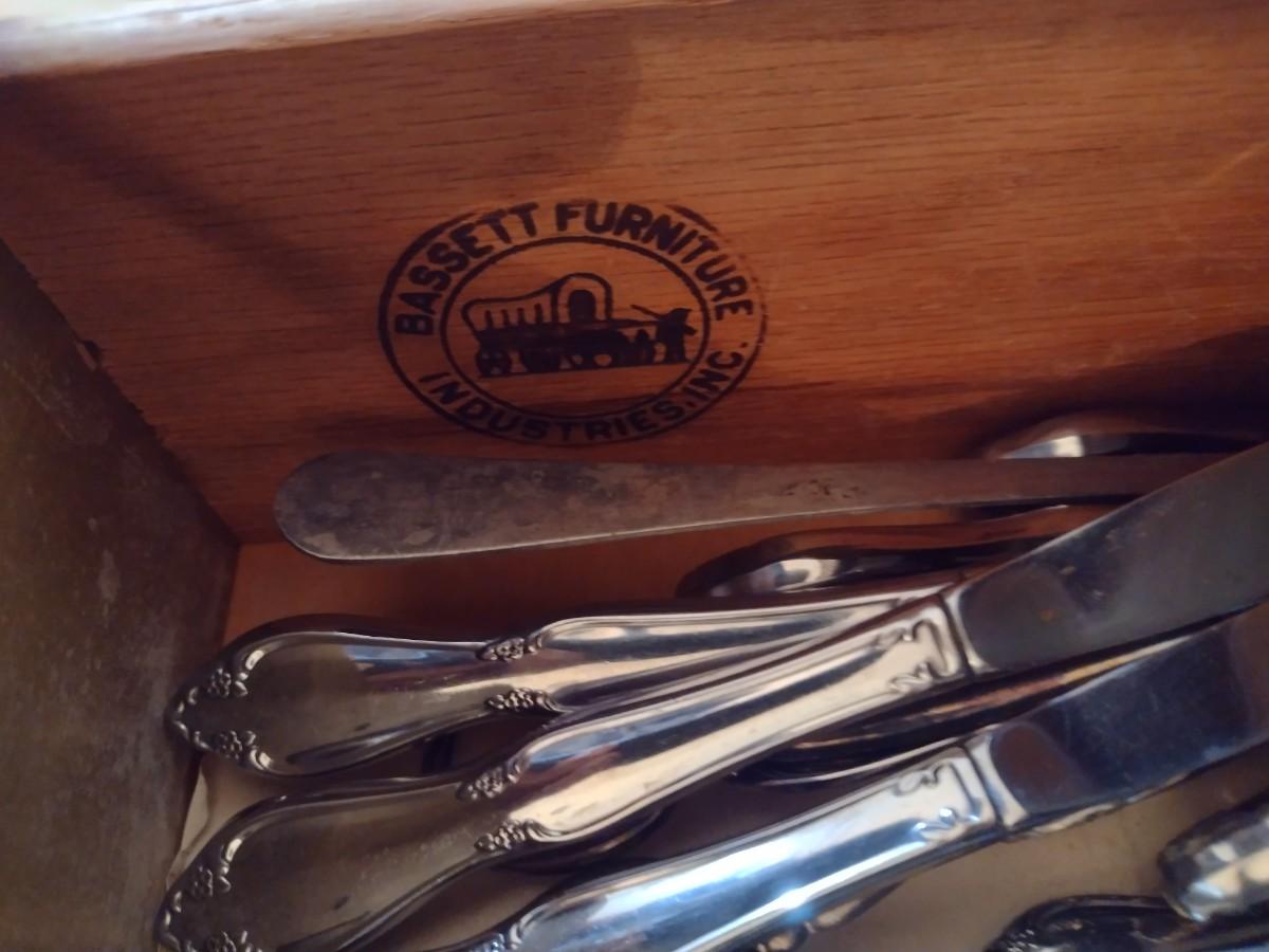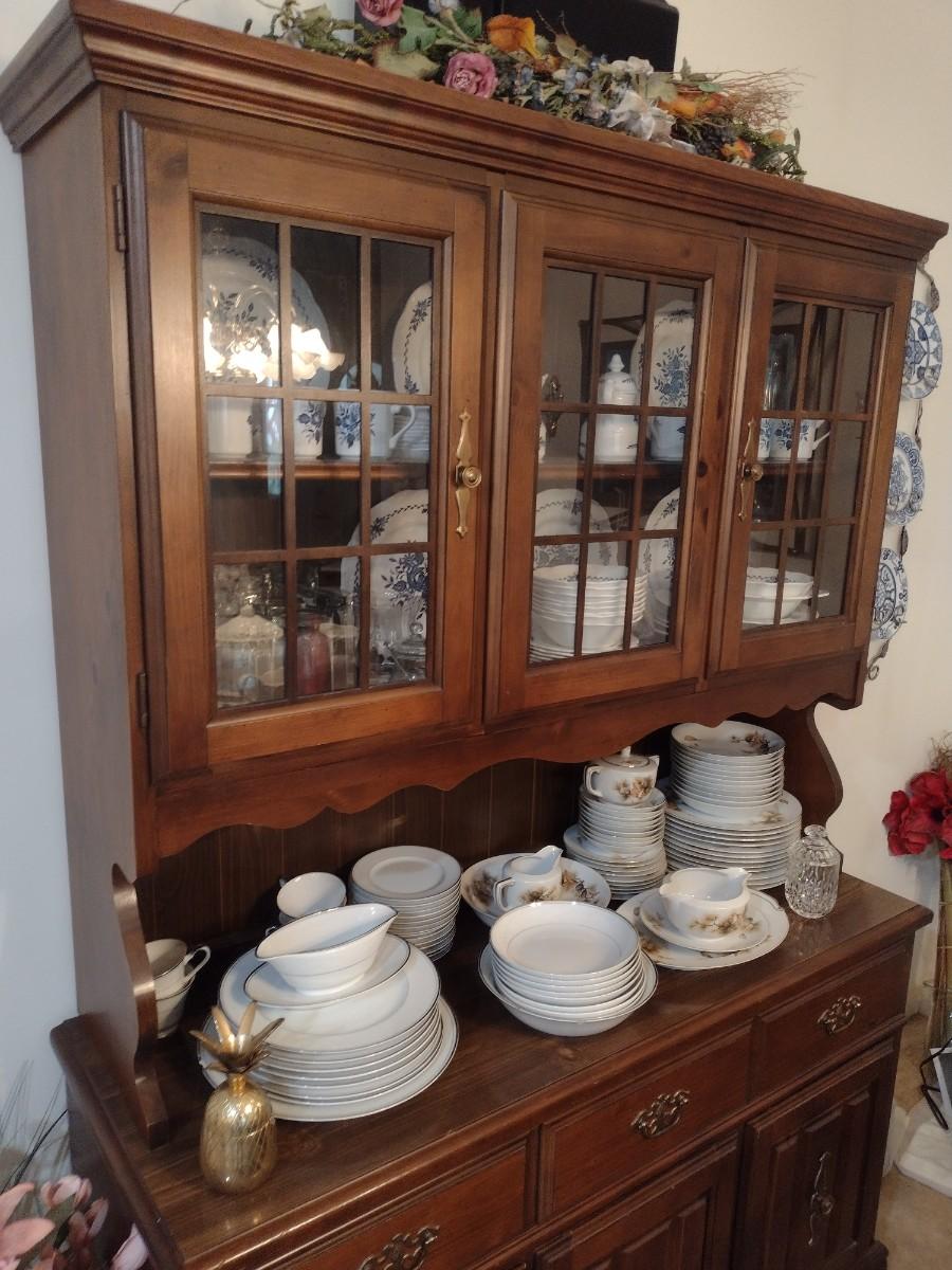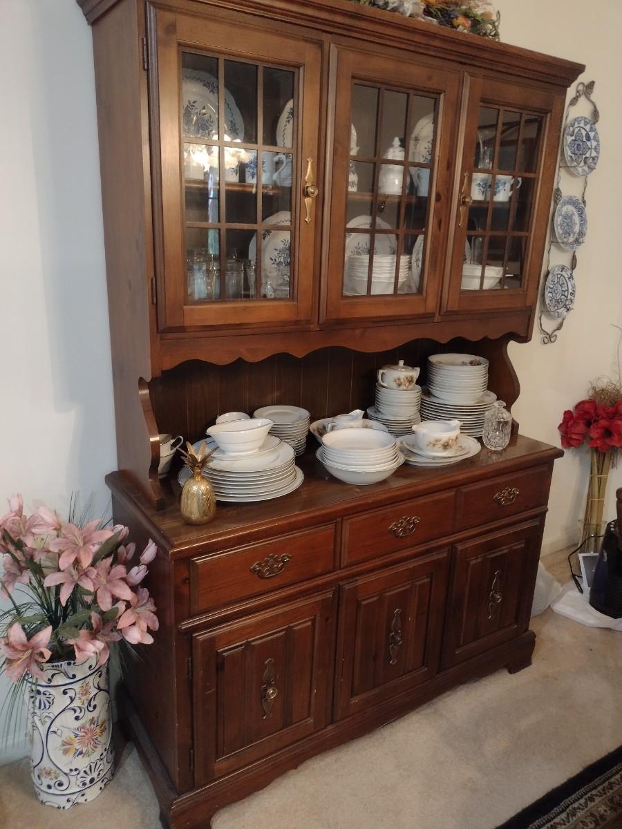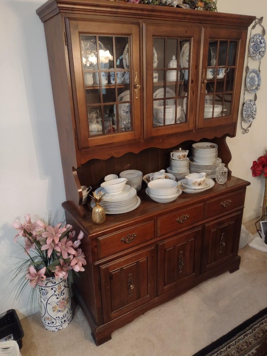 Bassett Furniture Walnut Finish Two Piece China Buffet Hutch (No Contents)