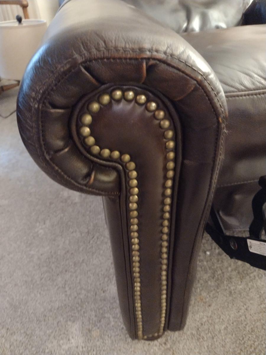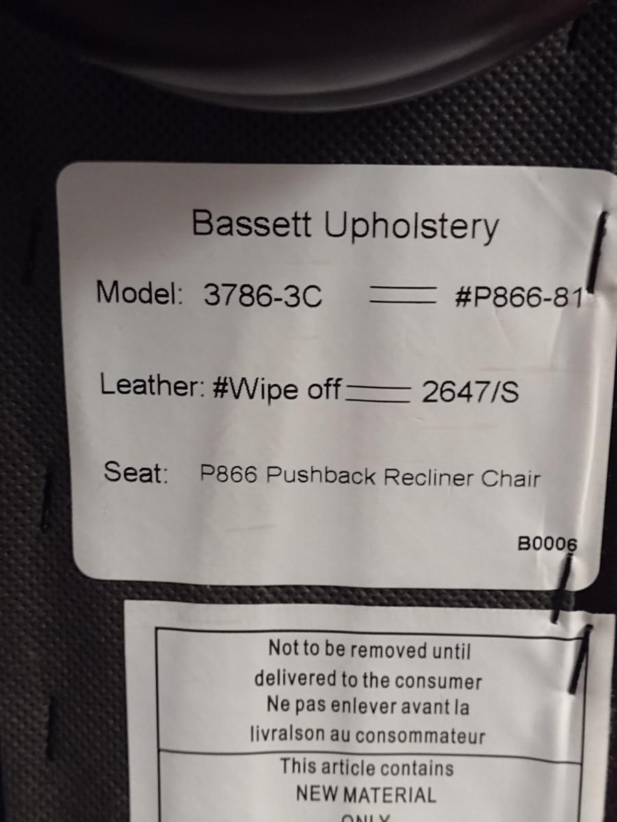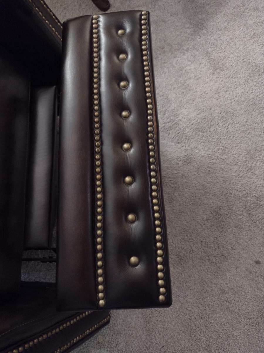 Bassett Pushback Reclining Chair with Brass Tack Accents. Upholstery appears to be leather.
