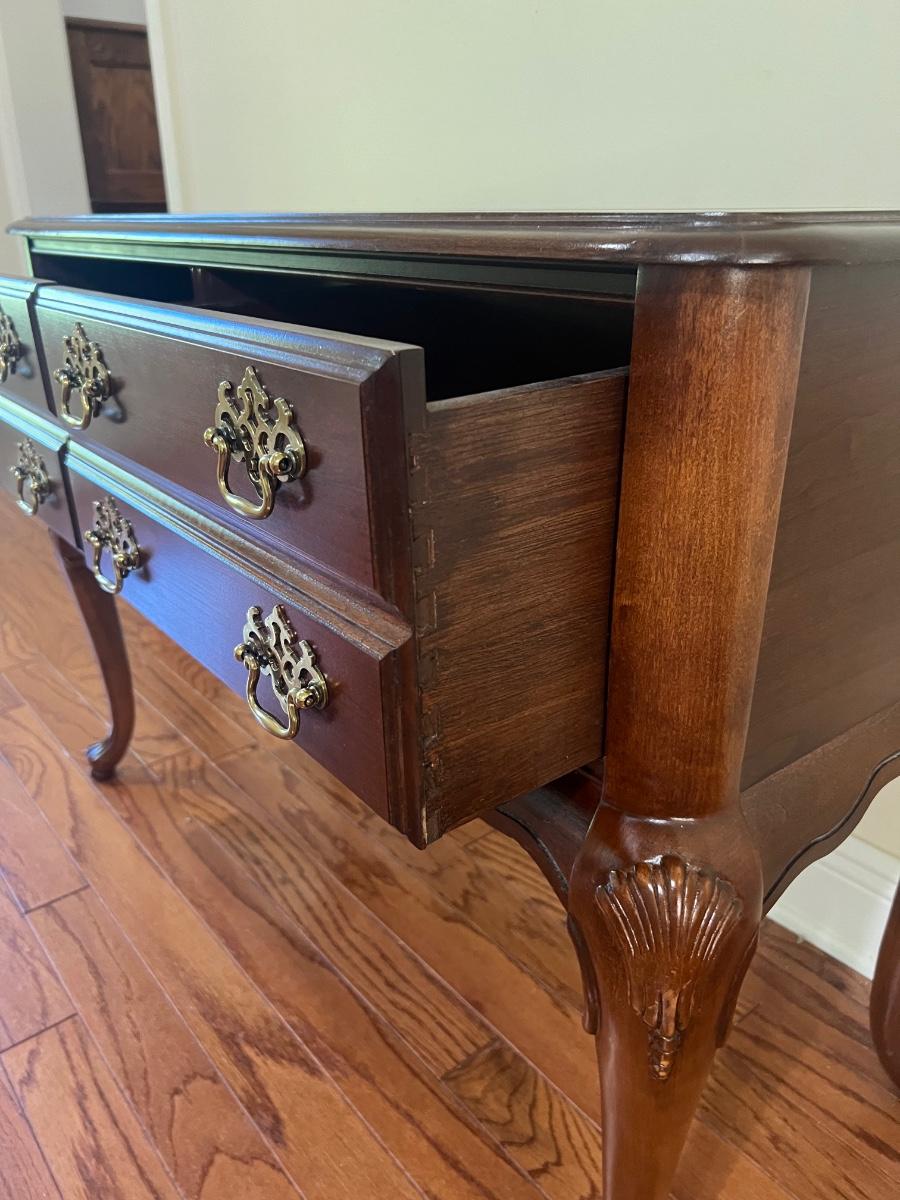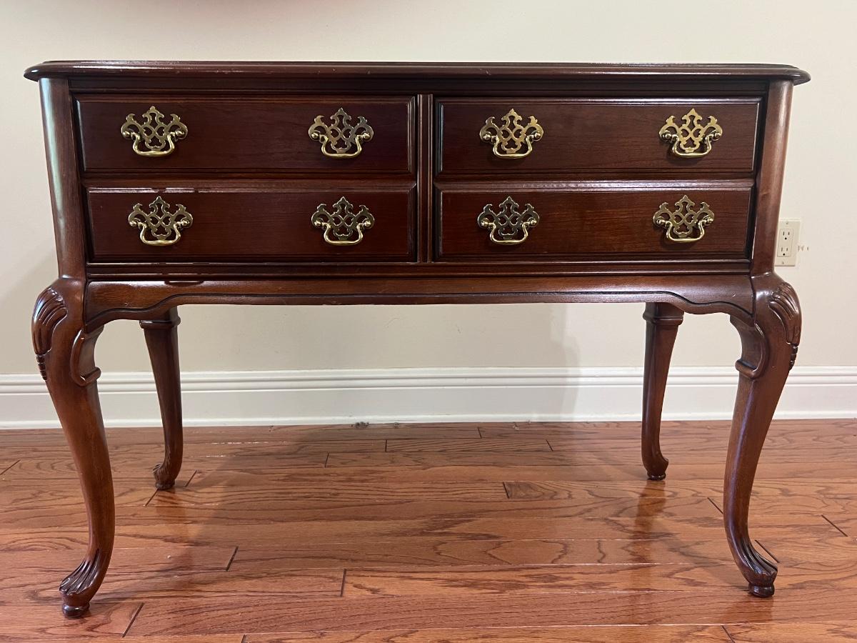 BASSETT Queen Ann Style Foyer Table measures 30 inches tall, 40 inches wide and 17 inches deep.
