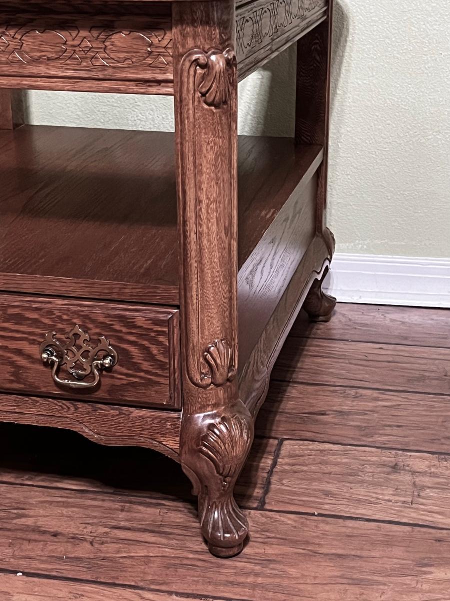 Includes ~ Two (2) Side tables = 22” H x 23” W x 27” D ~ Coffee table = 16” H x 48” W x 39” D ~ Drawer slides easily